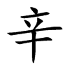 ,表示罪行。在天干次序中,“辛”承續“庚”,字形像人的屁股。所有與辛相關的字,都採用“辛”作邊旁。