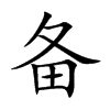 (形聲。從人,備(bèi)聲。本義:謹慎、警惕)