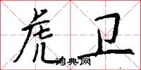 守衛王宮或國門的勇士。 明 宋訥 《壬子秋過故宮》詩:“虎衛龍墀人不見,戎兵騎馬出蕭墻。” 明 何景明 《關門》詩:“虎衛關門迥, 龍沙 塞曲深。”