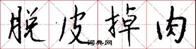 - 脫的解釋 脫 ō 離開,落掉:脫產。脫髮(?)。脫節。脫離。脫落。脫貧(擺脫貧困)。脫稿(完成著作)。脫手。擺脫。掙脫。臨陣逃脫。 遺漏:脫漏。脫誤。脫文(因抄刊古書而誤脫的字。亦稱“奪文”)。 取下,除去:脫