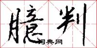 國語字典康熙字典說文解字反義詞古漢語字典成語字典歷史字典書法字典臆判拼音:yì pàn 臆判怎么寫好看臆判的解釋猶武斷。《新唐書·黎乾傳》:“本末駁舛,臆判自私,不足以訓。”詞語分解臆的解釋 臆 ì 胸:胸臆(心裡,多指心裡的話或想法,如“直抒臆臆”)。 主觀地,缺乏客觀依據的:臆造。臆測。臆度(?)。臆斷。臆見。 筆畫數:; 部首:月; 筆順編號: 判的解釋 判 à 區別,分辨,斷定:判明。判辨。判據。判讀(利用已知的視覺信息符號來判斷新獲得的視覺信息的含義)。判斷。 分開,截然不同:判然。判若兩人。判若鴻溝。 評定:裁判。談判。判卷子。 司法機關對案件的猜你喜歡:臆出的解釋主觀所出宋歐陽修春秋臆度的解釋憑主觀猜測書生芳信書臆決的解釋主觀地決斷唐韓愈平淮臆揣的解釋猶臆測沙汀淘金記一他臆算的解釋主觀推算明史歷志一但臆撰的解釋猶杜撰清紀昀閱微草堂臆骨的解釋即胸骨臆見的解釋亦作肊見個人的私見主臆判的解釋猶武斷新唐書黎乾傳本臆肉的解釋胸前的肉北魏賈思勰齊臆對的解釋猶意對以胸臆為對語出臆中的解釋猶言主觀想像漢王充論詞條推薦:竺寒的解釋嚴寒竺通篤明楊慎孝友掣搦的解釋拘牽牽制陳師道後山詩幾而不征的解釋查問而不徵稅幾通譏國前侯的解釋車轅的頸部參見前疾九解的解釋淮南子精神訓天有四時