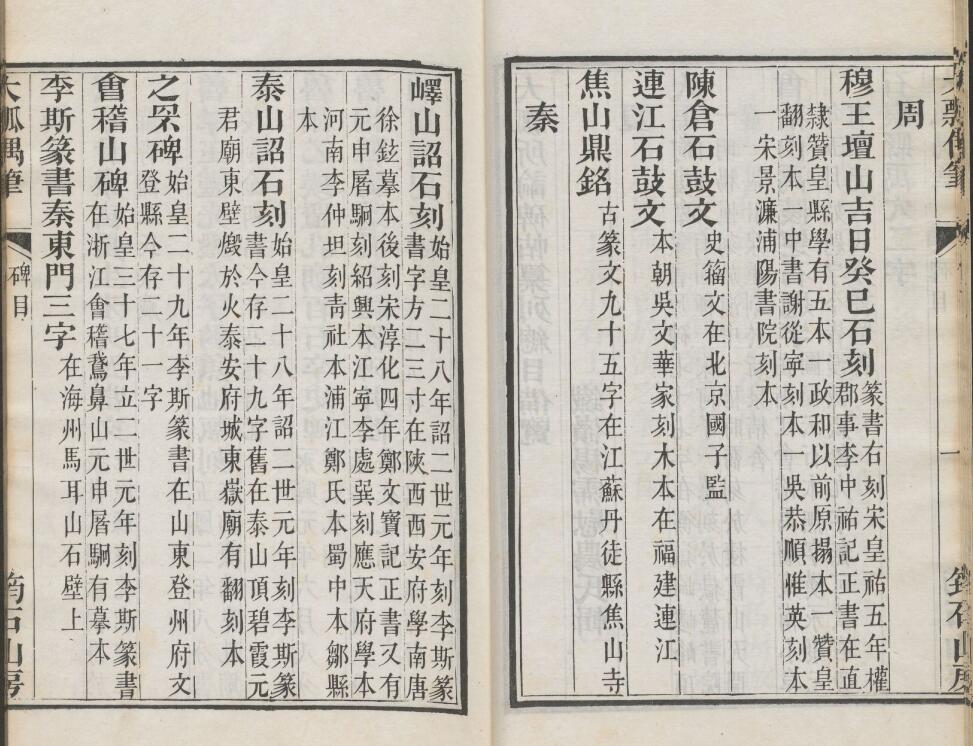 案孫淵如寰宇訪碑錄:會稽石刻,二世元年李斯篆書,在浙江會稽。元申屠厓摹本,近時所刻。又范氏天一閣書目史部:會稽三賦一卷,宋王十朋撰,明南逢吉注,嘉靖二年南大吉序。原鈔本誤作會稽山賦。