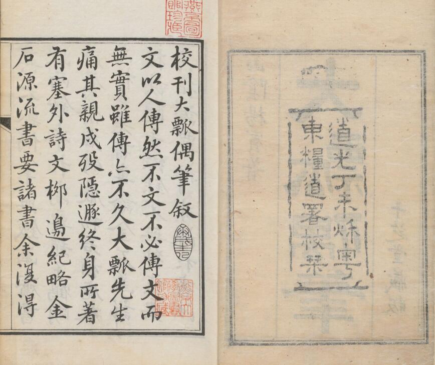 楊賓撰《大瓢偶筆》,8卷,總碑目,1卷,鐵函齋書跋,4卷,楊霈編,道光27年粵東糧道署校刊,燕京大學圖書館藏。《大瓢偶筆》一書成於康熙四十七年,為楊賓雜論碑帖,隨手偶書,原無次第,且多有重沓。道光間鐵嶺人楊霈重為校訂,刪去重複,排訂次序,並加以按語,極便學者。