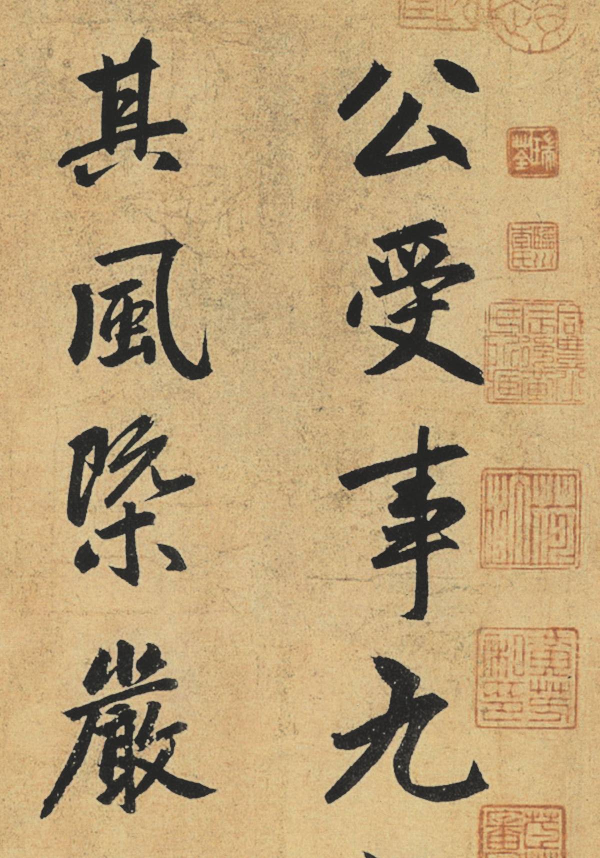 趙孟頫行楷《止齋記》,紙本,現藏上海博物館。此篇書於至大元年,時年55歲(1308年)。通篇字形俊秀飄逸,而筆筆又謹守法度,體現了他極深的行楷功力,乃至後學無法超越。