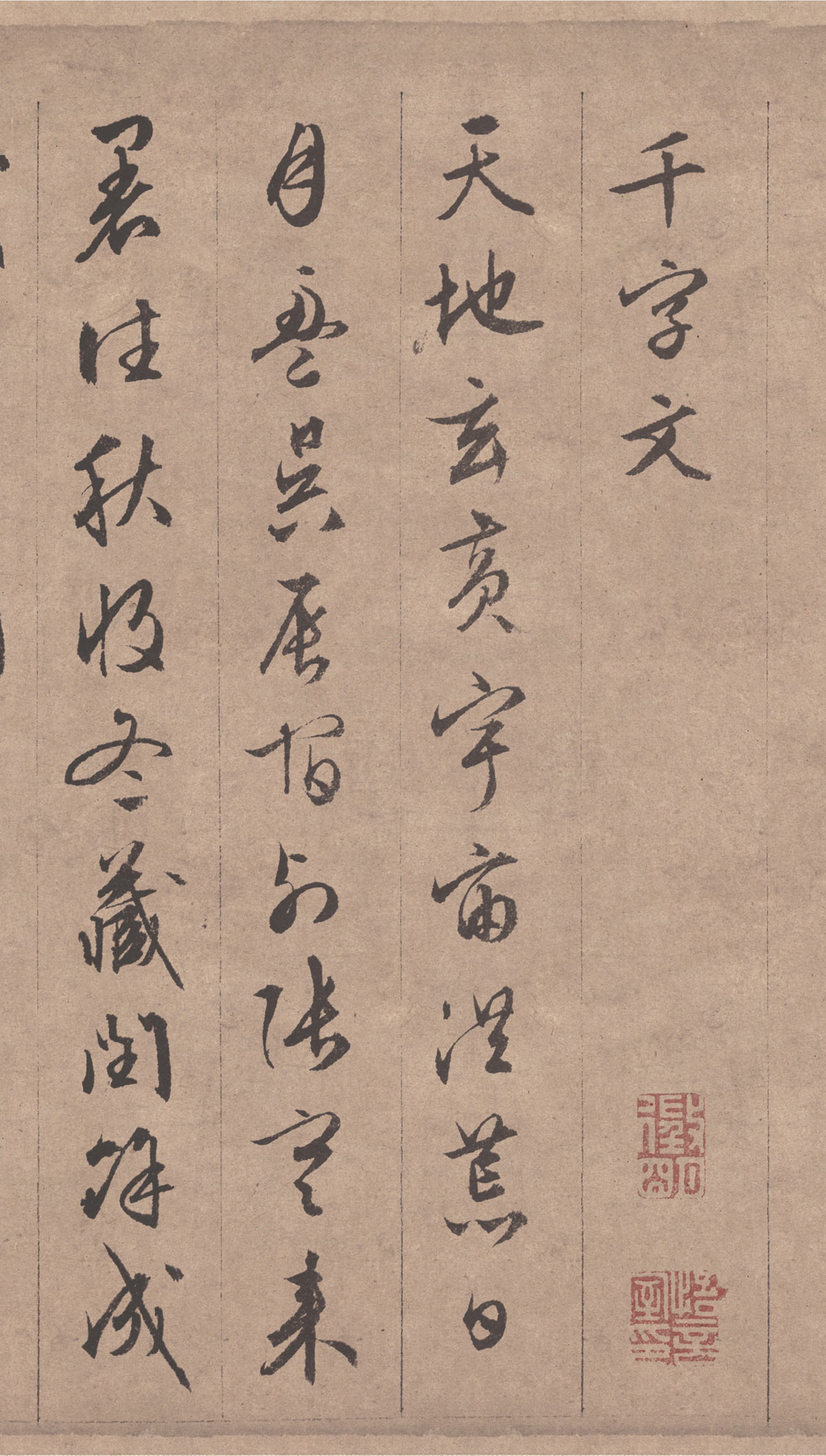 明 文徵明行草書法《千字文》,長卷,書於嘉靖乙巳(1545年)八月十日,時文徵明76歲。