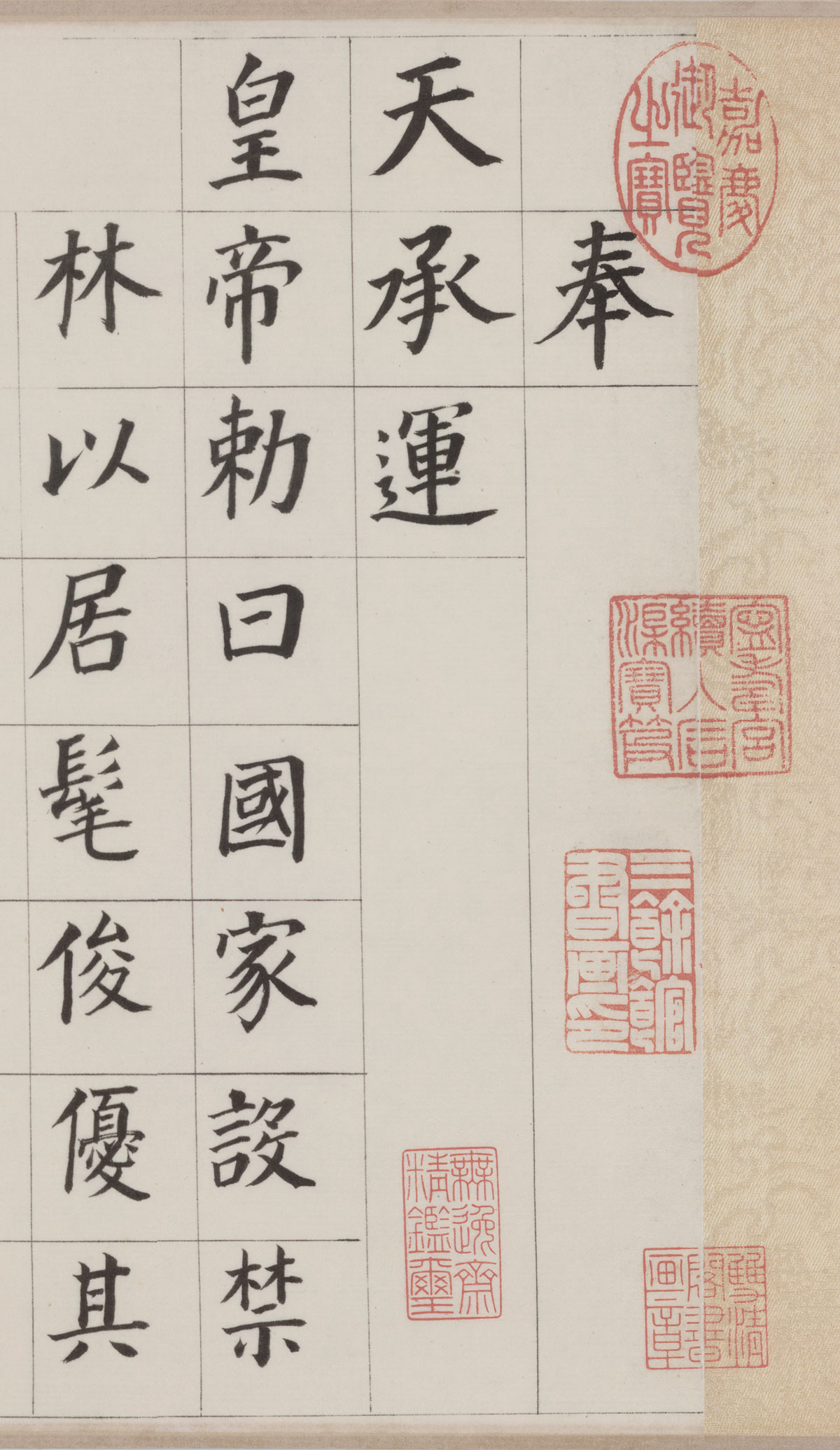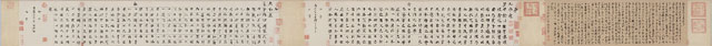 董其昌楷書《自誥身帖》全卷,絹本,橫414.3cm,縱26.8cm,書於明萬曆二十四年(1596年),遼寧省博物館藏。