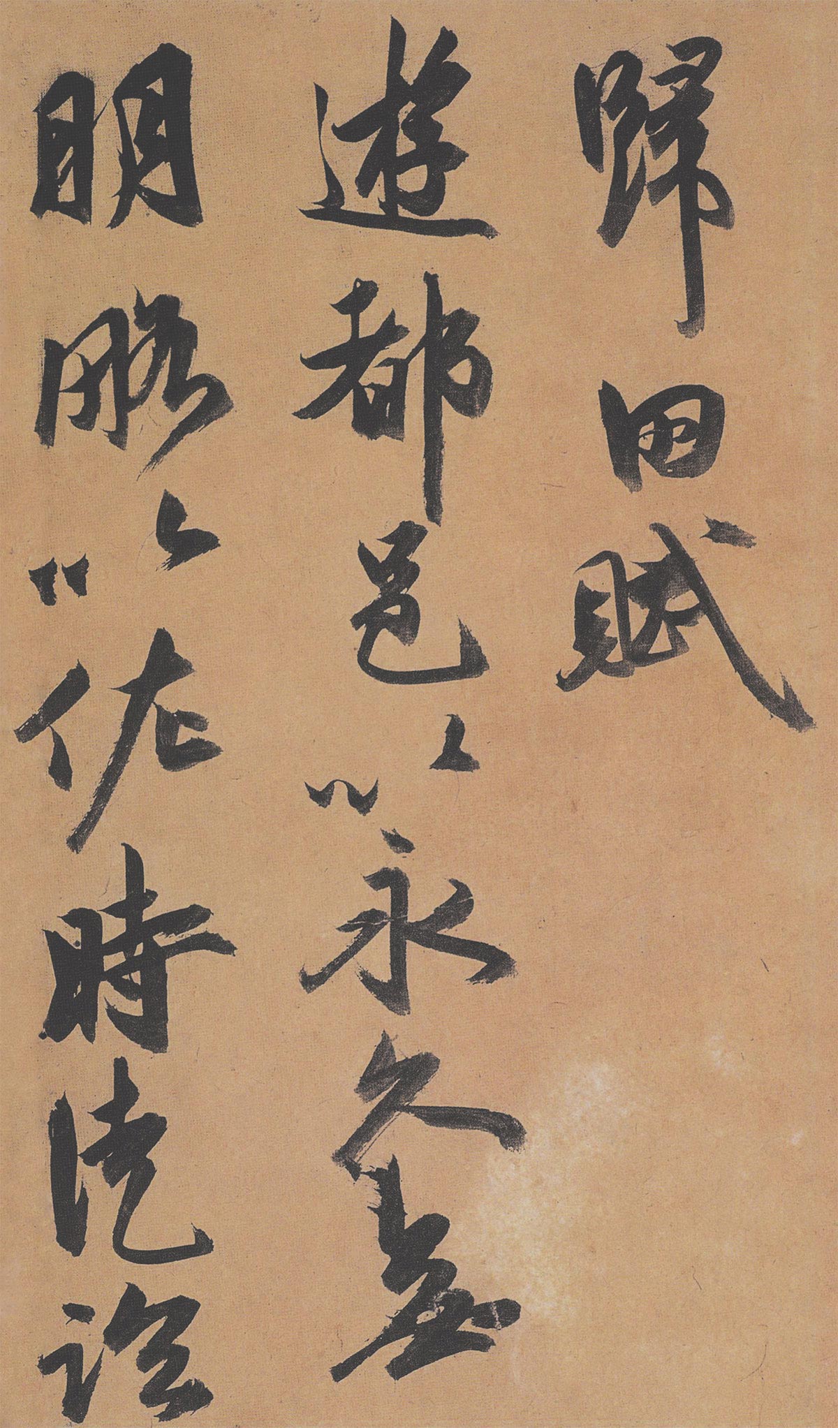 《歸田賦》原為冊頁,凡十四開,每開縱26.5厘米,橫28.9厘米,滿頁3行,總計79行。抄錄的是東漢張衡《歸田賦》和仲長統《樂志論》二文,款署“枝山散客書”,