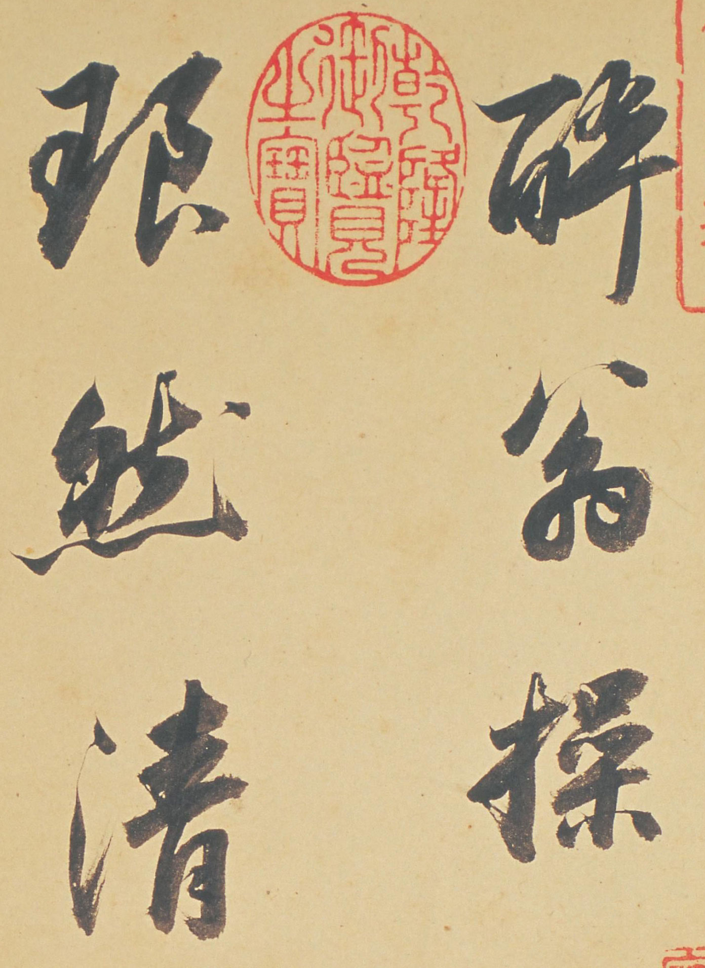此冊所書節選自北宋蘇軾《醉翁操》詞冊,冊未署年款。據《明史》卷二八八《董其昌傳》記載:“起故官,掌詹事府事。居三年,屢疏乞休,詔加太子太保致仕。”故從幅上所鈐“青宮太保”印推斷,可知該詩冊為明祟禎七年(1634年)董氏致仕以後之作品。有成親王永瑆題跋。