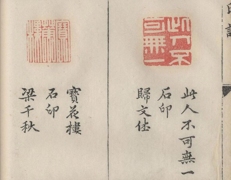 此《承清館印譜》為明代承清館主人張灝集輯。全書共分初、續集,彙輯文彭、沈野、何震、蘇宣、李流芳等二十二位印人印作而成,這也是首部彙輯諸家印作的印譜。每頁各四印,總四百八十方。其中以詞句閒章為多,每方印下註明釋文、印材與作者。此為中國國家圖書館藏,14.7 x 26.6 厘米,明萬曆時期鈐印刻本。