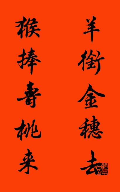 輓聯,名人名家對聯:羊銜金穗去 猴捧壽桃來