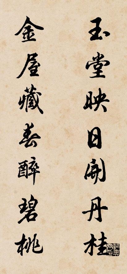 酒館,餐館,飯店對聯:玉堂映日開丹桂 金屋藏春醉碧桃