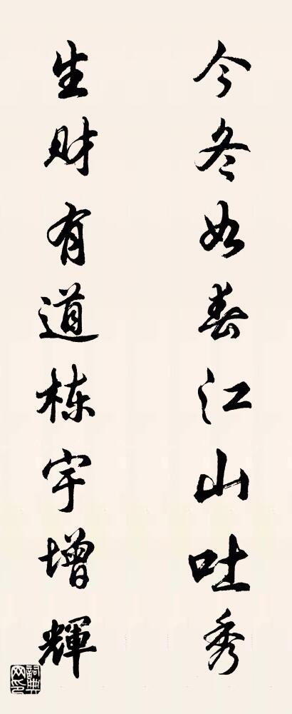 題贈,13字對聯對聯:今冬如春江山吐秀 生財有道棟宇增輝