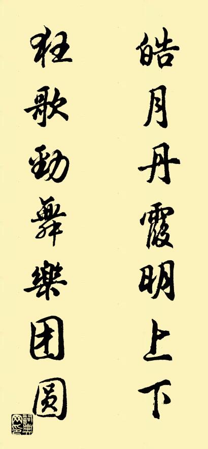 對聯:皓月丹霞明上下 狂歌勁舞樂團圓