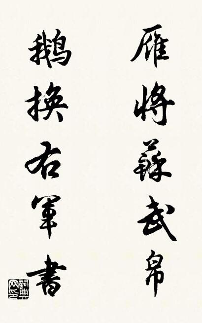 名人名家對聯:雁將蘇武帛; 鵝換右軍書。