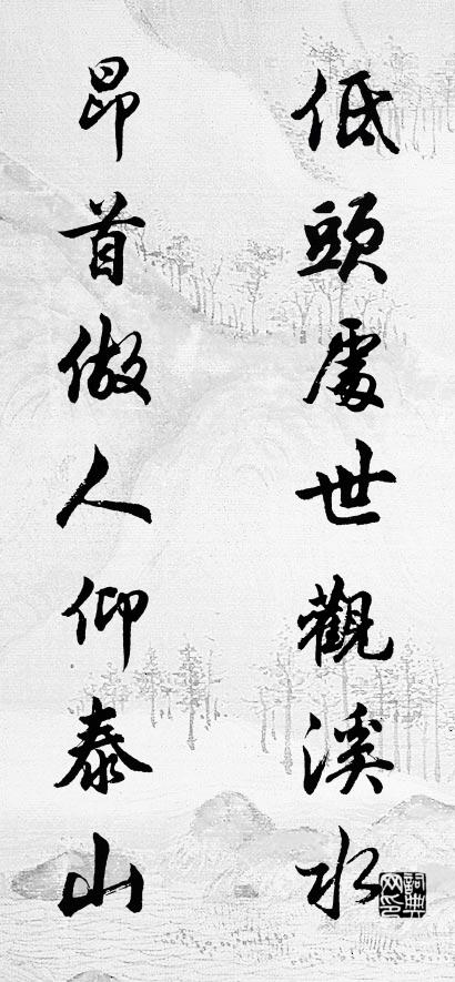 對聯低頭處世觀溪水 昂首做人仰泰山書法欣賞