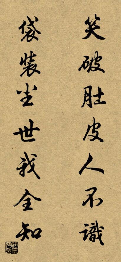 對聯笑破肚皮人不識 袋裝塵世我全知書法欣賞