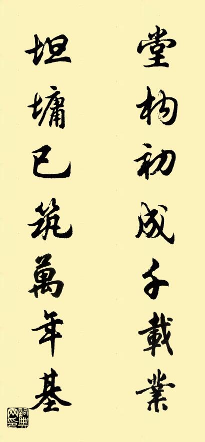 對聯:堂構初成千載業 坦墉已築萬年基