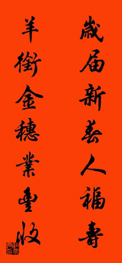 對聯:歲屆新春人福壽 羊銜金穗業豐收