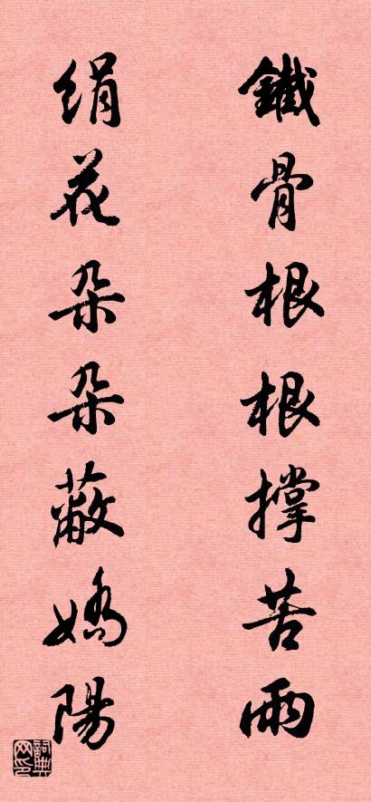 對聯:鐵骨根根撐苦雨 絹花朵朵蔽嬌陽