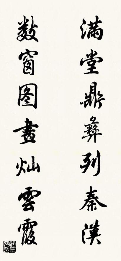 對聯:滿堂鼎彝列秦漢 數窗圖畫燦雲霞