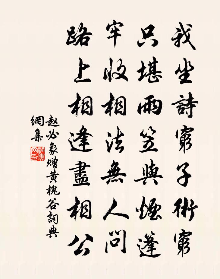 詩詞名句歷史字典書法欣賞書法字典國語詞典說文解字康熙字典古漢語字典標 題 作 者 詩 句 贈黃槐谷作者:趙必象 朝代:宋代贈黃槐谷原文我坐詩窮子術窮,只堪雨笠與煙篷。牢收相法無人問,路上相逢盡相公。詩詞問答問:贈黃槐谷的作者是誰?答:趙必象問:贈黃槐谷寫於哪個朝代?答:宋代趙必象贈黃槐谷書法欣賞贈黃槐谷書法作品詩詞推薦送雄直歲釋重顯〔宋代〕罷參還欲勘諸方,竿木隨身不易當。翻憶古來興化老,主賓用盡力牽羊。郊廟歌辭。禪社首樂章。太和賀知章〔唐代〕昭昭有唐,天俾萬國。列祖應命,四宗順則。申錫無疆,宗我同德。曾孫繼序,享神配極。宮詞一百首岳珂〔宋代〕轔轔車馬送降{奠去大},紗帽重瞳伏御樓。三度金門聽露布,今晨又見下昇州。題長樂亭陳與義〔宋代〕遠山雲迷顛,近山淨如沐。客子曳竹輿,伊鴉過山麓。我行一何遲,時序一何速。東風所經過,林水一時綠。疏雨春花吟潘璵〔宋代〕春未來時花未覺,春欲去時花又落。莫言世事無始終,春亦於花太情薄。我今問花並問春,司花司春者何人。空中皇太妃合春帖子五首蘇頌〔宋代〕愛敬承三殿,慈柔化六宮。常膺萬春祝,永繼二南風。宮詞王珪〔唐代〕麗日祥煙鎖禁林,櫻桃初熟可成陰。年年翠輦來游幸,花落 * 一寸深。緣識宋太宗〔宋代〕嶧陽之山,傳名日桐,六律相沿五音中。七軫弦調皆是意,審詳悞則亦如空。清秋寂靜華堂深,聽之令我思沈吟。六言三首劉克莊〔宋代〕錦機組織尤巧,紙田收穫甚微。即今束閣藏起,多時掃閣載歸。別鄒秀才釋正覺〔宋代〕聲利明來若夢遊,肯迂征家宿雲棲。情高素抱山樊志,性淡幽尋松石儔。愛我家風清入眼,問伊時事默搖頭。今朝紹熙庚戍中秋後三日拜張於湖墓董道輔〔宋代〕曉出白下門,瘦馬踏秋色。鐘山度蒼翠,慰我遠遊客。暮投清果寺,花草獻幽寂。長廊靜無人,落日照西壁。平生登越王樓即事牛徵〔唐代〕危樓送遠目,信美奈鄉情。轉岸孤舟疾,銜山落照明。蕭條看草色,惆悵認江聲。誰會登臨恨,從軍白髮生。生查子呂本中〔宋代〕殘春霧雨余,小院黃昏後。說道覓新詞,把酒來相就。酴醿插髻雲,歲歲長如舊。不是做詞遲,卻怕添伊瘦。書里中事陸游〔宋代〕事近接耳目,誕信良易知。頗疑有定數,一惑不可移。坐視非所安,忠告反取疑。雖抱愚直意,妄發悔曷追?挽許通判二首劉宰〔宋代〕妙年故府接英游,盍上周行展壯猷。再命去天仍不遠,此心於世澹無求。奏功僅許臨岩色,投老才能貳大州。總為送契首座住雁山靈峰釋如珙〔宋代〕曷送住持芝下寺,祖翁一個破砂盆。寒酸固是難開眼,煮飯猶堪煮菜根。偶書晁說之〔宋代〕京華可望無高樓,聞道故人多白頭。此身卻似城東柳,惜別傷離不自愁。朝中措 以上二首見元草堂詩餘卷上杜仁傑〔元代〕汴梁三月正繁華。行路見雙娃。遍體一身明錦,遮塵滿面烏紗。車鞍似水,留伊無故,去落誰家。爭奈無人說興,回先生過湖州東林沈氏,飲醉,以石榴皮書其蘇軾〔宋代〕世俗何知貧是病,神仙可學道之餘。但知白酒留佳客,不問黃公覓素書。寄平甫王安石〔宋代〕少時為學豈身謀,欲老低徊各自羞。乘馬從徒真擾擾,求田問舍轉悠悠。弦歌舊國平生樂,鞍馬新年幾日留。坐想名句推薦可惜重陽,不把黃花與。吳文英《蝶戀花·九日和吳見山韻》 寶馬雕車香滿路。辛棄疾《青玉案·元夕》 最是人間留不住,朱顏辭鏡花辭樹。王國維《蝶戀花·閱盡天涯離別苦》 春風旍旗擁萬夫,幕下諸將思草枯。黃庭堅《送范德孺知慶州》 東門之楊,其葉牂牂。佚名《東門之楊》 碧野朱橋當日事,人不見,水空流。秦觀《江城子·西城楊柳弄春柔》 順天者存,逆天者亡。孟子《孟子·離婁章句上·第七節》 人品之不高,總為一利字看不破;學業之不進,總為一懶字丟不開。王永彬《圍爐夜話·第十六則》 兄弟者,分形連氣之人也。顏之推《顏氏家訓·兄弟篇》 醉後不知天在水,滿船清夢壓星河。唐珙《題龍陽縣青草湖》
