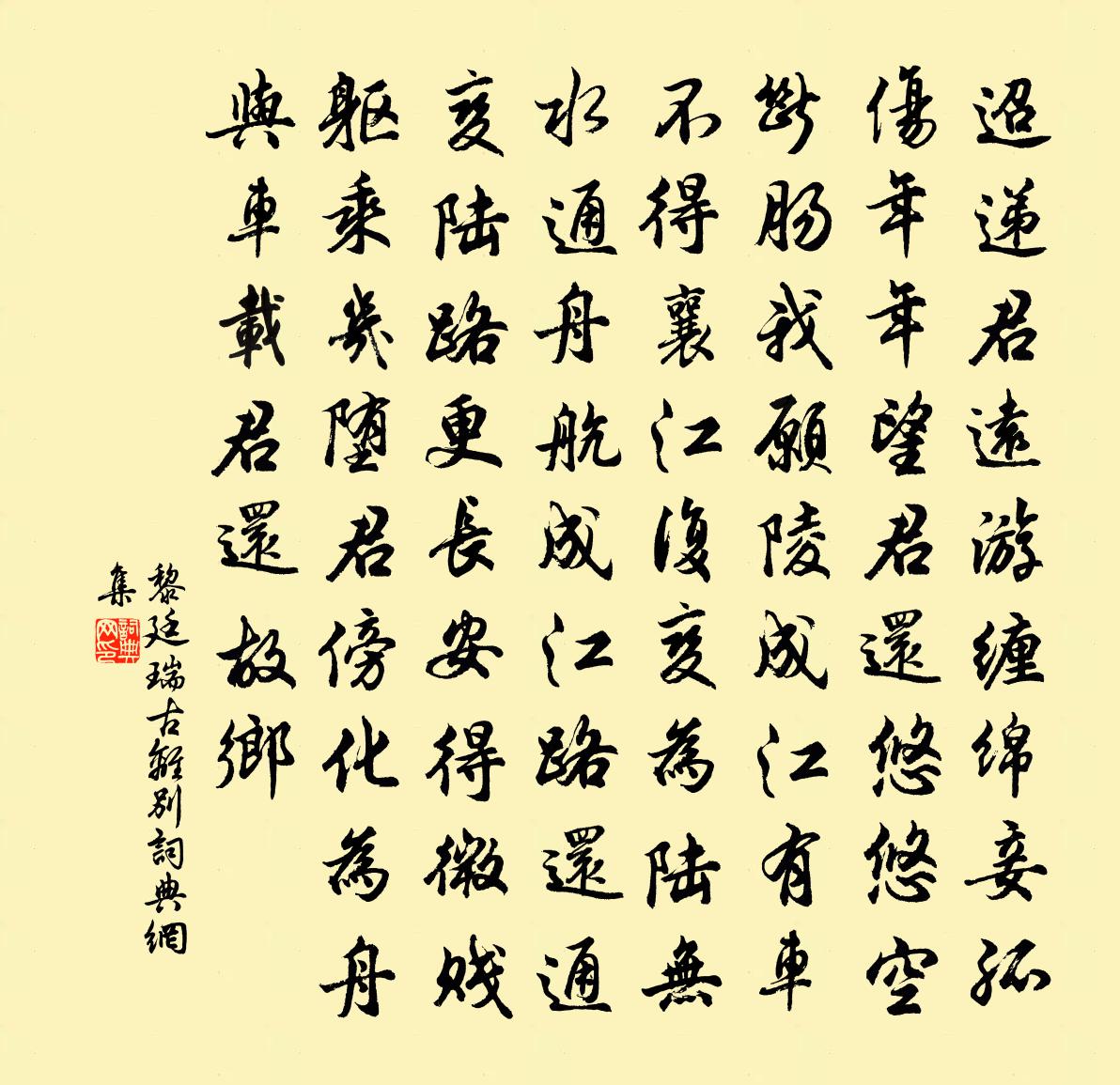 詩詞名句歷史字典書法欣賞書法字典國語詞典說文解字康熙字典古漢語字典標 題 作 者 詩 句 古離別作者:黎廷瑞 朝代:宋代古離別原文迢遞君遠遊,纏1|1綿妾孤傷。年年望君還,悠悠空斷腸。我願陵成江,有車不得襄。江復變為陸,無水通舟航。成江路還通,變陸路更長。安得微賤軀,乘幾墮君傍。化為舟與車,載君還故鄉。詩詞問答問:古離別的作者是誰?答:黎廷瑞問:古離別寫於哪個朝代?答:宋代黎廷瑞古離別書法欣賞古離別書法作品詩詞推薦降中央王吉昌〔元代〕廓玄覽神清,性淨健體輕馳。無涯炳煥光飛。月樣披離。揮霍千靈變態,觸處頭頭顯儀。念慧除迷。拍懷冰瑩赴瑤水調歌頭 和盧仲敬太守曹伯啟〔元代〕嘗為武林客,歡洽快平生。誰知分袂江滸,西往復東行。今日簿書旁午,明日山川迢遞,愁恨幾時清。回首舊遊地滿庭芳(政和癸巳滁陽作,其年京師大雪)向子諲〔宋代〕天宇長閒,飛仙狂醉,挼雲碎玉沈空。謝家庭院,爭道絮因風。不怕寒生寶粟,深調護、犀幕重重。瑤林里,疏梅哭尹師魯梅堯臣〔宋代〕謫死古來有,無如君甚冤。文章不世用,器業欲誰論。野鳥災王傅,招辭些屈原。平生洛陽友,零落幾人存。秋日裴夷直〔唐代〕六眸龜北涼應早,三足烏南日正長。常記京關怨搖落,如今目斷滿林霜。眼兒媚·樓上黃昏杏花寒阮閱〔宋代〕樓上黃昏杏花寒。斜月小欄乾。一雙燕子,兩行征雁,畫角聲殘。綺窗人在東風裡,灑淚對春閒。也應似舊,盈盈謫官渡淮舟中遇風欲覆舟而作唐介〔宋代〕聖宋非狂楚,清淮異汨羅。平生仗忠信,今日任風波。舟楫顛危甚,黿鼉出沒多。斜陽幸無事,沽酒聽漁歌。次韻王適雪晴復雪二首蘇轍〔宋代〕驕陽得一雪,逾尺應更好。晨興視窗隙,驚見晴霞杲。九衢無停跡,狼籍須一掃。空餘浩然氣,凜凜接清昊。余寒題談氏濯纓亭胡宏〔宋代〕茶陵水似滄浪情,我行征驂登小亭。孔聖去矣不可見,野人有歌誰復聽。孟子能推孔聖心,寥寥斯意有誰尋。中原十魔軍晃逈〔宋代〕與道彌新世轉疏,老心恢廓學如初。妄緣紛擾隨時過,雲物何曾礙碧虛。次韻晁子與王灼〔宋代〕韓門今日有真傳,興起斯文四百年。可惜飛龍臥荒櫪,閒看翠翮落虛弦。花石詩十一章鄧肅〔宋代〕飽食官吏不深思,務求新巧日孳孳。不知均是圃中物,遷遠而近蓋其私。外戚世家序司馬遷〔兩漢〕自古受命帝王及繼體守文之君,非獨內德茂也,蓋亦有外戚之助焉。夏之興也以塗山,而桀之放也以末喜。殷之興偈頌十九首釋紹曇〔宋代〕大地蹭翻無寸土,昆蟲介甲絕行蹤。護生禁足元勛在,圓覺伽藍一掃空。桂江逢王使君旅櫬歸劉言史〔唐代〕故人丹旐出南威,少婦隨喪哭漸歸。遙想北原新壟上,日寒光淺水松稀。鵲橋仙 夜聞杜鵑陸游〔宋代〕茅檐人靜,篷窗燈暗,春晚連江風雨。林鶯巢燕總無聲,但月夜常啼杜宇。催成清淚,驚殘孤夢,又揀深枝飛去。回山後寄范酇先輩李頻〔唐代〕高樓會月夜,北雁向南分。留住經春雪,辭來見夏雲。遙空江不極,絕頂日難曛。一與山僧坐,無因得議文。楚塞樓黃播〔宋代〕樓上何由楚塞名,楚人曾此設重扃。固知宇宙同文軌,聊把江山作障屏。次行奚山蘇頌〔宋代〕奚山繚繞百重深,握節何妨馬上吟。當路牛羊眠薦草,避人鳥鵲噪寒林。羸肌已怯旜裘重,衰鬢寧禁霜雪侵。獨愛題馮家洞喻良能〔宋代〕空岩寒氣凜兢兢,入戶神清思亦澂。似應如非聲澒洞,已垂未落石崚嶒。深於豳俗藏冰室,險過文王避雨陵。刮蘚名句推薦凍雲宵遍嶺,素雪曉凝華。李世民《望雪》 萬里辭家事鼓鼙,金陵驛路楚雲西。劉長卿《送李判官之潤州行營》 易求無價寶,難得有心郎。魚玄機《贈鄰女 / 寄李億員外》 握手經年別,驚心九日霜。妙信《九日酬諸子》 待到山花爛漫時,她在叢中笑。 * 《卜運算元·詠梅》 松下問童子,言師採藥去。賈島《尋隱者不遇 / 孫革訪羊尊師詩》 但夢想、一枝瀟灑,黃昏斜照水周邦彥《花犯·小石梅花》 客從遠方來,遺我雙鯉魚。佚名《飲馬長城窟行》 春水滿四澤,夏雲多奇峰。陶淵明《四時》 凡百事之成也,必在敬之;其敗也,必在慢之。荀子《荀子·議兵》