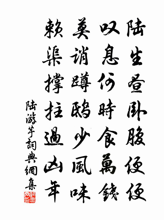 詩詞名句歷史字典書法欣賞書法字典國語詞典說文解字康熙字典古漢語字典標 題 作 者 詩 句 芋作者:陸游 朝代:宋代芋原文陸生晝臥腹便便,嘆息何時食萬錢?莫誚蹲鴟少風味,賴渠撐拄過凶年。詩詞問答問:芋的作者是誰?答:陸游問:芋寫於哪個朝代?答:宋代問:陸游的名句有哪些?答:陸游名句大全陸游芋書法欣賞芋書法作品詩詞推薦宿州天慶觀殿門留贈符離道士呂岩〔唐代〕秋景蕭條葉亂飛,庭松影里坐移時。雲迷鶴駕何方去,仙洞朝元失我期。短燈檠歌韓愈〔唐代〕長檠八尺空自長,短檠二尺便且光。黃簾綠幕朱戶閉,風露氣入秋堂涼。裁衣寄遠淚眼暗,搔頭頻挑移近床。太學識媿陸游〔宋代〕幾年羸疾臥家山,牧豎樵夫日往還。至論本求編簡上,忠言乃在里閭間。私憂驕虜心常折,念報明時涕每潸。寸祿訴衷情(雨中會飲賞梅,燒燭花杪)趙彥端〔宋代〕洗妝僛舞傍清尊。霏雨淡黃昏。殷勤與花為地,燒燭助微溫。松半嶺,竹當門。意如村。明朝酒醒,桃李漫山,心燕李山甫〔唐代〕每歲同辛苦,看人似有情。亂飛春得意,幽語夜聞聲。整羽莊姜恨,回身漢後輕。豪家足金彈,不用污雕楹。與子先足及伯暢甥別投宿明月山客邸悵然有賦程公許〔宋代〕相思命千里駕,慘別緩三疊歌。幸祖帳得少住,奈征夫催發何。守鄭易陳方及境改信都過大名書呈呂太尉李復〔宋代〕淮陽閉合欲偷閒,新捧除書墨未乾。五日御風方假翼,兩河試郡別移官。生緣有定隨流易,世事無端用力難。今日野狐嶺周伯琦〔元代〕高嶺出雲表,白晝生虛寒。冰霜四時凜,星斗咫尺攀。其陰控朔部,其陽接燕關。澗谷深叵測,梯磴紆百盤。坳垤謁金門魏了翁〔宋代〕那復有。氣味醲於春酒。猶向故鄉懷印綬。相過何日又。吐出心腸錦繡。問我阿娘依舊。娘亦祝君如柏壽。相看霜送錢守歸朝除大農二首唐仲友〔宋代〕賤跡歸田裡,高懷不世情。細傾憂國酒,頻話及時耕。紫橐恩將近,茅茨計未成。攀轅無好語,所願達時英。南華寺五首李昴英〔宋代〕西方骨董南方寶,留鎮曹溪幾百年。自是後人當不得,有如翁者亦單傳。和顏長官百詠客路朱繼芳〔宋代〕兒女傷悲土不為,健行童僕遠相依。春風日日生芳草,未必啼鵑怨不歸。挽方漕陳宓〔宋代〕淮南草木舊知名,胡騎應愁水偃成。自是人豪長不死,如何腸斷些歌聲。送陳判官赴綏德賈島〔唐代〕將軍邀入幕,束帶便離家。身暖蕉衣窄,天寒磧日斜。火燒岡斷葦,風卷雪平沙。絲竹豐州有,春來只欠花。端午帖子太上皇后閣周必大〔宋代〕暑衣初進滿宮床,霧縠雲綃五月涼。化洽周南無一事,尚吟絺綌葛覃章。乾寧三年丙辰在奉天重圍作韓偓〔唐代〕仗劍夜巡城,衣襟滿霜霰。賊火遍郊坰,飛焰侵星漢。積雪似空江,長林如斷岸。獨憑女牆頭,思家起長嘆。臨江仙王哲〔元代〕絳帳今朝重到此,榴花對景先開。坐間誰悟害風來。四梧知我意,三耀散予災。既得相逢休酩酊,洞中別有樽壘。宿直里店二首劉宰〔宋代〕扁舟泛泛逐驚湍,朔吹飈飈作曉寒。艤棹遠來投野店,應門幸喜得儒冠。題薰陾中興慶壽頌楊萬里〔宋代〕炎暉十華生太皇,即宋光武趙少康。皇穹柱折地無軸,再辟三極紀八荒。與天同仁自同壽,八十萬歲登九九。淳熙書晁補之所藏與可畫竹三首蘇軾〔宋代〕與可畫竹時,見竹不見人。豈獨不見人,嗒然遺其身。其身與竹化,無窮出清新。莊周世無有,誰知此凝神。若人名句推薦看風流慷慨,談笑過殘年辛棄疾《八聲甘州·故將軍飲罷夜歸來》 春色邊城動,客思故鄉來。何遜《邊城思》 遷客此時徒極目,長洲孤月向誰明。李白《鸚鵡洲》 最是人間留不住,朱顏辭鏡花辭樹。王國維《蝶戀花·閱盡天涯離別苦》 梧桐葉上三更雨,葉葉聲聲是別離。周紫芝《鷓鴣天·一點殘紅欲盡時》 蜂爭粉蕊蝶分香,不似垂楊惜金縷。溫庭筠《惜春詞》 眾里嫣然通一顧,人間顏色如塵土。王國維《蝶戀花·窈窕燕姬年十五》 何處可為別,長安青綺門。李白《送裴十八圖南歸嵩山二首》 塵中見月心亦閒,況是清秋仙府間。劉禹錫《八月十五夜桃源玩月》 氣軟來風易,枝繁度鳥遲。李爽《芳樹》