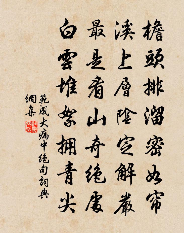 檐頭排溜密如簾,溪上層陰定解嚴。最是看山奇絕處,白雲堆絮擁青尖。