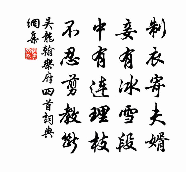 詩詞名句歷史字典書法欣賞書法字典國語詞典說文解字康熙字典古漢語字典標 題 作 者 詩 句 樂府四首作者:吳龍翰 朝代:宋代樂府四首原文製衣寄夫婿,妾有冰雪段。中有連理枝,不忍剪教斷。詩詞問答問:樂府四首的作者是誰?答:吳龍翰問:樂府四首寫於哪個朝代?答:宋代吳龍翰樂府四首書法欣賞樂府四首書法作品詩詞推薦鷓鴣天晏幾道〔宋代〕守得蓮開結伴遊,約開萍葉上蘭舟。來時浦口雲隨棹,采罷江邊月滿樓。花不語,水空流,年年拚得為花愁。明朝酬淮南提刑邵不疑學士王安石〔宋代〕曾詠常州送主人,豈知身得兩朱輪。田疇泛濫川方壅,廚傳蕭條市以貧。以我薄材思拊傴,賴君余教得因循。詢有八月初二日方回〔宋代〕蟬聲漸漸怯西風,閒捻青枝玩菊叢。老去一身都是病,寤來萬夢總成空。喜分果餌小兒女,浪費薪蔬頑僕僮。嚴瀨次韻仲秉見寄二首李流謙〔宋代〕讀書空有痴,學道苦無工。散策群峰近,穿溪小逕通。此身猶客里,野性合山中。春水添新浪,煩君理釣筒。見雁有懷黃庚〔宋代〕滿眼西風憶故廬,親朋音問久相疏。年年江上無情雁,只帶秋來不帶書。題周皓大夫新亭子二十二韻白居易〔唐代〕東道常為主,南亭別待賓。規模何日創?景致一時新。廣砌羅紅藥,疏窗蔭綠筠。鎖開賓閣曉,梯上妓樓春。置醴有感陳普〔宋代〕後人百事不如古,創立造為難悉數。一百苟且萬千年,一夫阿狥彌九土。神仙不死豈有之。起自秦皇並漢武。蜀陵鐵如意吟邵雍〔宋代〕此物鐵為之,何嘗肯妄持。長隨大{上敝下瓦}子,永伴小車兒。擊碎珊瑚處,敲殘牙齒時。誰能學此輩,才始人習氣趙庚夫〔宋代〕習氣年來已盡除,一窗長是讀方書。家因護竹廚無筍,住偶鄰僧飯有蔬。老去情懷多感舊,貧來親故不如初。幾時東風第一枝(元夕)曹勛〔宋代〕寶苑明春,青霞射晚,六幕雲閒風靜。茂林修竹昂霄,素月照人澄瑩。梅花十頃,遞暗香、瓊瑤真景。散萬斛金蓮述往二首陳杰〔宋代〕阿六生活大可,滕叔經紀自能。申生死為恭子,寧哥墓曰惠陵。與微之同賦梅花得香字三首王安石〔宋代〕漢宮嬌額半塗黃,粉色凌寒透薄妝。好借月魂來映燭,恐隨春夢去飛揚。風亭把盞酬孤艷,雪徑回輿認暗香。不為昭君怨陳杰〔宋代〕玉籌暈深宮領巾,金槽夜琤出塞新。風沙隴上歲搖碧,一掬猶殘長樂春。六奇計醜書來慢,曾是控弦三十萬。沼仇董行成佚名〔宋代〕唐懷州河內縣董行成能策賊。有一人從河陽長店,盜行人驢一頭並皮袋。天欲曉,至懷州。行成至街中,見之,叱何草不黃佚名〔先秦〕何草不黃?何日不行?何人不將?經營四方。何草不玄?何人不矜?哀我征夫,獨為匪民。匪兕匪虎,率彼曠野。早夏曉興贈夢得白居易〔唐代〕窗明簾薄透朝光,臥整巾簪起下床。背壁燈殘經宿焰,開箱衣帶隔年香。無情亦任他春去,不醉爭銷得晝長?一部蒙劉元中數示東坡詩徐恢〔宋代〕無邪公文天所贊,汩汩詞源倒河漢。一篇新出紙為貴,萬國爭傳金可換。晚節投荒無芥蔕,畢景著書自娛玩。天之和樂天鸚鵡劉禹錫〔唐代〕養來鸚鵡觜初紅,宜在朱樓繡戶中。頻學喚人緣性慧,偏能識主為情通。斂毛睡足難銷日,嚲翅愁時願見風。誰遣琴酒白居易〔唐代〕耳根得聽琴初暢,心地忘機酒半酣。若使啟期兼解醉,應言四樂不言三。清平樂(居厚弟生日)劉克莊〔宋代〕冰輪萬里。雲卷天如洗。先向海山生大士。卻誕卯金之子。冰盆荔子堪嘗。膽瓶茉莉尤香。震旦人人炎熱,補陀夜名句推薦祿不患其不來,患祿來,而不能無愧其祿。王永彬《圍爐夜話·第四四則》 欲求生富貴,須下死工夫。佚名《增廣賢文·上集》 時見歸村人,沙行渡頭歇。孟浩然《秋登蘭山寄張五》 春風一夜吹鄉夢,又逐春風到洛城。武元衡《春興》 馬嘶人散後,秋風換、故園夢裡。吳文英《丁香結·夷則商秋日海棠》 安民之術,在於豐財。豐財者,務本而節用也。陳壽《三國志·魏書·任蘇杜鄭倉傳》 蘭陵美酒鬱金香,玉碗盛來琥珀光。李白《客中行 / 客中作》 昨日鄰家乞新火,曉窗分與讀書燈。王禹偁《清明》 盡日空濛無所見,雁行斜去字聯聯。韋莊《登鹹陽縣樓望雨》 仙人琪樹白無色,王母桃花小不香。白居易《牡丹芳》