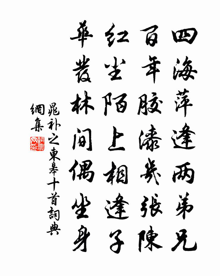 四海萍逢兩弟兄,百年膠漆幾張陳。紅塵陌上相逢子,華發林間偶坐身。