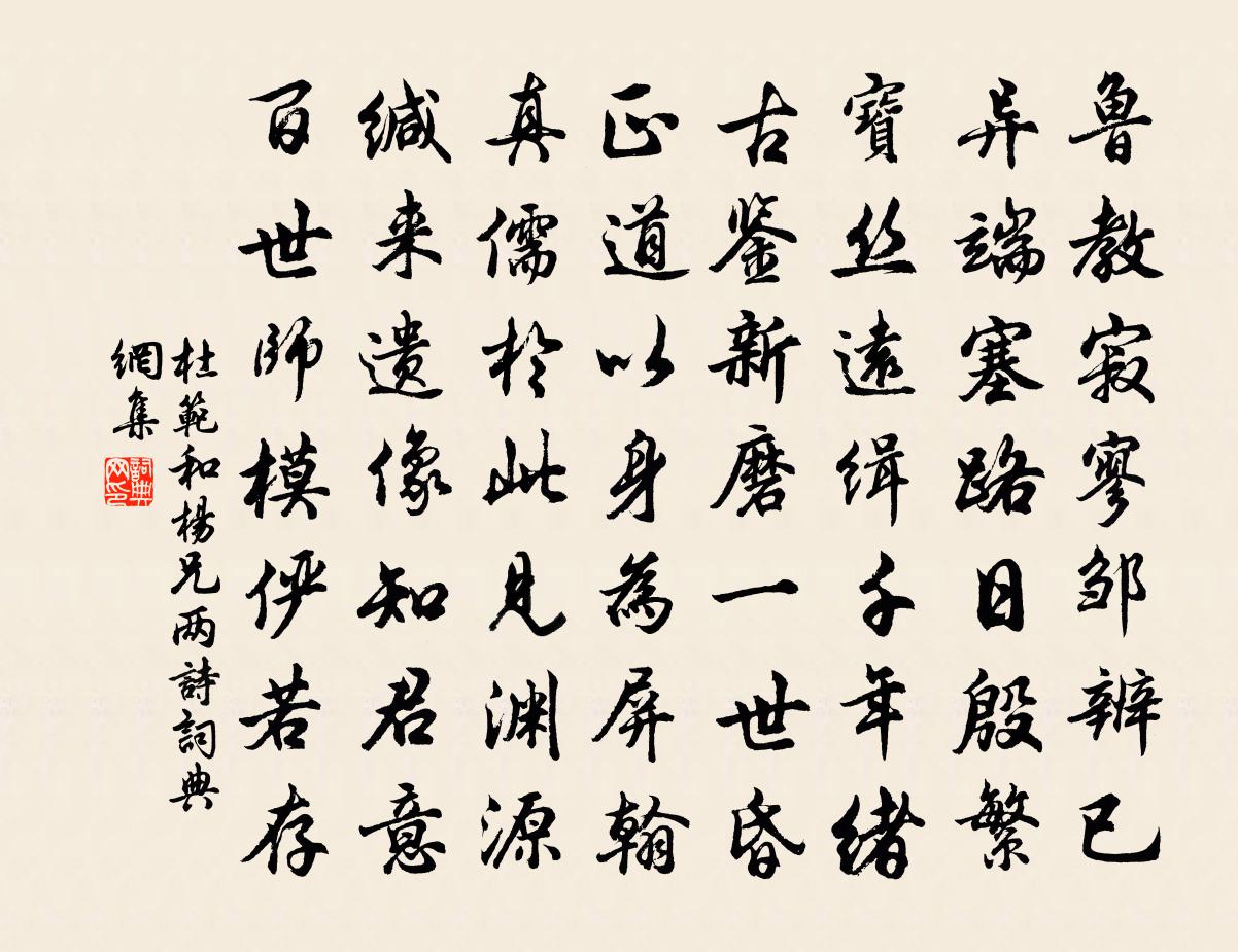 詩詞名句歷史字典書法欣賞書法字典國語詞典說文解字康熙字典古漢語字典標 題 作 者 詩 句 和楊兄兩詩作者:杜范 朝代:宋代和楊兄兩詩原文魯教寂寥鄒辨已,異端塞路日殷繁。寶絲遠緝千年緒,古鑒新磨一世昏。正道以身為屏翰,真儒於此見淵源。緘來遺像知君意,百世師模儼若存。詩詞問答問:和楊兄兩詩的作者是誰?答:杜范問:和楊兄兩詩寫於哪個朝代?答:宋代杜范和楊兄兩詩書法欣賞和楊兄兩詩書法作品詩詞推薦奉和虢州劉給事使君三堂新題二十一詠北樓韓愈〔唐代〕郡樓乘曉上,盡日不能回。晚色將秋至,長風送月來。聞師魯謫富水梅堯臣〔宋代〕朝見諫臣逐,暮章從謫官。附炎人所易,抱義爾惟難。寧作沈泥玉,無為媚渚蘭。心知歸有日,時向鬥牛看。以酒渴愛江清作五小詩寄廖明略學士兼簡初和黃庭堅〔宋代〕斯人絕少可,白眼視公卿。每與俗物逢,三沐取潔清。我亦漫浪者,君何許同盟。試問盧溪叟,猶得多可名。靈溪老松歌盧士衡〔唐代〕靈溪古觀壇西角,千尺鱗皴棟樑朴。橫出一枝戛樓閣,直上一枝掃寥廓。白石蒼苔擁根腳,月明風撼寒光落。有時春集東園詩楊儀〔宋代〕芳節未晼晚,名園好澄霽。停車沒徑苔,移席傍叢筀。蝶粉留紅房,蜂須抱香蔕。微波生酒杯,輕吹拂衣袂。何當上巳日永崇里言懷劉得仁〔唐代〕未敢分明賞物華,十年如見夢中花。遊人過盡衡門掩,獨自憑欄到日斜。無題效商隱體四首楊維楨〔元代〕主家院落近連昌,燕子歸來舊杏梁。金埒近收青海駿,錦籠初教雪衣娘。卷衣甲帳春容曉,吹笛西樓月色涼。今夜次韻元禮春懷十首黃庭堅〔宋代〕穿花蹴踏千秋索,挑菜嬉遊二月晴。已被風光催我老,懶隨兒輩遶春城。哭處默上人裴說〔唐代〕靜景憑高望,光分翠嶂開。嶮飛千尺雪,寒撲一聲雷。過去雲沖斷,旁來燒隔回。何當住峰下,終歲絕塵埃。記夢李劉〔宋代〕壯志已違黃鵠下,老身合占白鷗前。夜來耿耿江湖夢,秋水長天一釣船。題禪僧院施肩吾〔唐代〕棲禪枝畔數花新,飛作琉璃池上塵。谷鳥自啼猿自叫,不能愁得定中人。翁通判通輓詞徐璣〔宋代〕昔年樓上飲,分韻正秋深。冷貌長如在,高風不可尋。獨遺楊子厚,誰寄惠連音。莫向山廬宿,松聲似夜吟。上元應製夏竦〔宋代〕魚龍曼衍六街呈,金鎖通宵啟玉京,冉冉游塵生輦道,遲遲春箭入歌聲。實坊月皎龍燈淡,紫館風微鶴焰平。種瓜韋應物〔唐代〕率性方鹵莽,理生尤自疏。今年學種瓜,園圃多荒蕪。眾草同雨露,新苗獨翳如。直以春窘迫,過時不得鋤。田家感皇恩 捧讀雪樓憲使歲寒亭記, 節之姚燧〔元代〕尋丈歲寒亭,何多環侍。煙節雪萬青士。旄頭鐵甲,更兩蒼官為帥。落成天雨雪、皆奇事。不獨玄冬,偏生幽思送何叔信三首趙蕃〔宋代〕貴溪亦復謂三山,去我冰溪一水間。舴艋篷籠不難買,有時乘興泊鷗灣。金剛隨機無盡頌法界通花分第十九釋印肅〔宋代〕不辭山路遠,要見唐朝面。對面也不識,誰知者方便。月中仙 賓主互換王吉昌〔元代〕索妙修真,分元神作賓,一氣為主。玄機不昧,憑坎離精粹,權衡三五。浩然成造化,銷屍魄、純陽結聚。七返真惜分飛(南浦舟中與江西帥漕酌別,夜後忽大雪)范成大〔宋代〕畫戟錦車皆雅故。簫鼓留連客住。南浦春波暮。難望羅襪生塵處。明日船旗應不駐。且唱斷腸新句。卷盡珠簾雨。寄黃州錄事劉進之同年孫應時〔宋代〕騎曹新上雪堂西,千里淮南望眼迷。正我尋雲並滄海,思君步月過黃泥。清時鼓角無驚夢,勝日樽罍有共攜。人物名句推薦兵強勝人,人強勝天佚名《逸周書·卷三·文傳解》 人之所助者,信也。佚名《易傳·繫辭傳上·第十二章》 莫見長安行樂處,空令歲月易蹉跎。李頎《送魏萬之京》 如花美眷,似水流年曹雪芹《紅樓夢·第二十三回》 墦間人散後,烏鳥正西東。范成大《清明日狸渡道中》 六翮飄颻私自憐,一離京洛十餘年。高適《別董大二首》 透內閣香風陣陣,掩重門暮雨紛紛。王實甫《十二月過堯民歌·別情》 罩向金籠好羽儀,分明喉舌似君稀僧定渚《詠鸚鵡》 慨當初,倚飛何重,後來何酷。文徵明《滿江紅·拂拭殘碑》 明月如霜,好風如水,清景無限。蘇軾《永遇樂·彭城夜宿燕子樓》