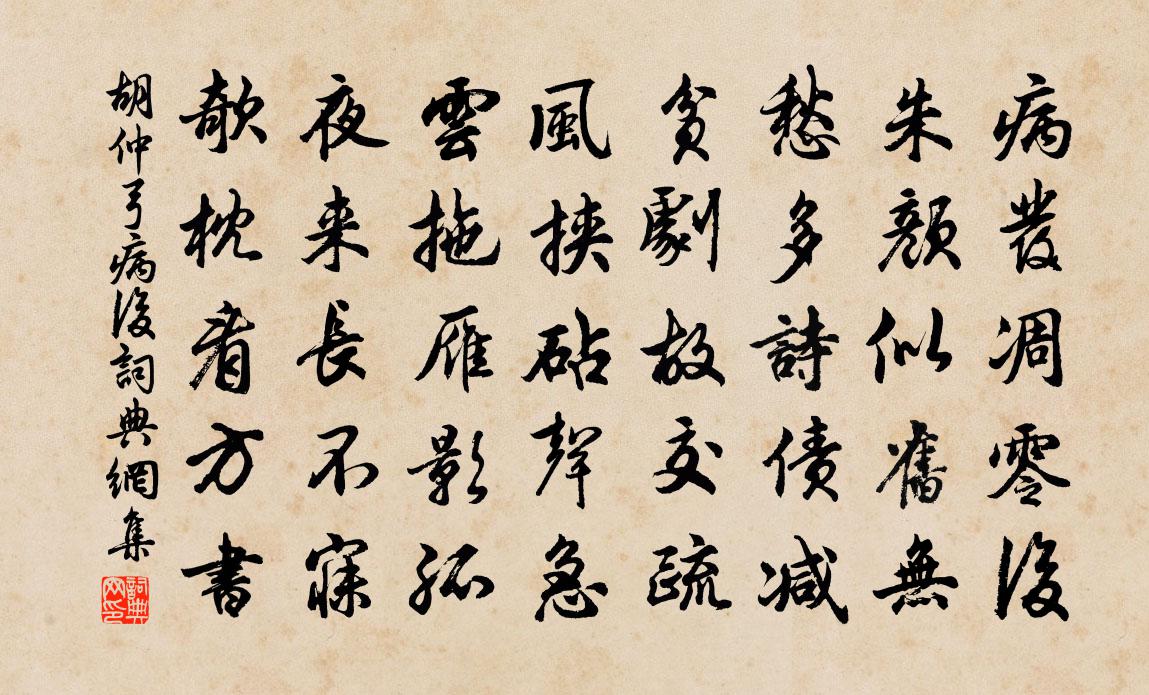 詩詞名句歷史字典書法欣賞書法字典國語詞典說文解字康熙字典古漢語字典標 題 作 者 詩 句 病後作者:胡仲弓 朝代:宋代病後原文病發凋零後,朱顏似舊無。愁多詩債減,貧劇故交疏。風挾砧聲急,雲拖雁影孤。夜來長不寐,欹枕看方書。詩詞問答問:病後的作者是誰?答:胡仲弓問:病後寫於哪個朝代?答:宋代胡仲弓病後書法欣賞病後書法作品詩詞推薦宿齋太一宮即事五首宋庠〔宋代〕宮垣寶勢壓靈鰲,窈窱齋房宿幕高。倦枕不知秋已至,商音半夜入雲璈。癸巳除夕偶成黃景仁〔清代〕千家笑語漏遲遲,憂患潛從物外知。悄立市橋人不識,一星如月看多時。陳文正黃庭帖贊岳珂〔宋代〕隆興聖主臨盛朝,元臣堂堂冠蟬貂。鎮撫百度服天驕,九鼎安固屹莫搖。凜然遺墨松後凋,美錦不裼璞不雕。百年送查仲文三首項安世〔宋代〕先生江海乾,使者水曹郎。開絹印三道,懷人天一方。上江春水急,穿峽晚雲長。詩酒勤陶寫,中年屬易傷。雜書五首方回〔宋代〕饒君遒緊日千篇,未辦驪珠出九淵。欲詣彭城陳正字,須參南嶽趙章泉。家居自戒陸游〔宋代〕霜嚴雞報晨,月落犬警盜。遺粒與棄糠,每媿不足報。椎奴事樵汲,跣婢勤爨灶。有過姑教之,箠楚置勿道。又作此奉衛王杜甫〔唐代〕西北樓成雄楚都,遠開山嶽散江湖。二儀清濁還高下,三伏炎蒸定有無。推轂幾年唯鎮靜,曳裾終日盛文儒。白頭句曹緯〔宋代〕登臨獨立時。次潮陽寧公詩韻三首敖陶孫〔宋代〕天外誰飄桂子風,老夫鼻觀已先通。直須斬斷年時話,匹似西來嘆不逢。贈孫莘老七絕蘇軾〔宋代〕天目山前綠浸裙,碧瀾堂上看銜艫。作堤捍水非吾事,閒送苕溪入太湖。十月菊潘牥〔宋代〕香名不枉入騷壇,最愛霜枝傲歲寒。切莫逢人嘆遲暮,何曾委地有彫殘。人如靖節文壇堪,世欠靈均少得餐。矣吾詠史二首陳造〔宋代〕暴楚狂秦席捲中,謀臣戰將各言功。端知四百綿炎祚,只屬商山禿鬢翁。題招提院靜照堂祖無擇〔宋代〕院靜遠囂塵,虛堂締構新。幾招台嶺客,共話沃州春,想像山中樂,優遊物外身。公卿詩滿壁,雅正日相親。麴生訪宿白居易〔唐代〕西齋寂已暮,叩門聲嘀嘀。知是君宿來,自拂塵埃席。村家何所有?茶果迎來客。貧靜似僧居,竹林依四壁。廚燈詠柳薛逢〔唐代〕弱植驚風急自傷,暮來翻遣思悠揚。曾飄紫陌隨高下,敢拂朱闌競短長。縈砌乍飛還乍舞,撲池如雪又如霜。莫令遣興陸游〔宋代〕耆舊日凋謝,將如此老何。懣拈如意舞,狂扣唾壺歌。郡縣輕民力,封疆恃虜和。功民莫看鏡,吾意已蹉跎。寄靈一律師姚合〔唐代〕梵書鈔律千餘紙,淨院焚香獨受持。童子病來煙火絕,清泉漱口過齋時。宴李家宅佚名〔宋代〕畫屏深掩瑞雲光,羅綺花飛白玉堂。銀榼酒傾魚尾倒,金爐灰滿鴨心香。輕搖綠水青蛾斂,亂觸紅絲皓腕狂。今日彭衙行(郃陽縣西北有彭衙城)杜甫〔唐代〕憶昔避賊初,北走經險艱。夜深彭衙道,月照白水山。盡室久徒步,逢人多厚顏。參差谷鳥吟,不見遊子還。痴女野老文同〔宋代〕野老扶白頭,耕墾事由壠。豈無兒與孫,凍餒實我恐。地產止數出,財用知幾種。食肉與衣帛,賢者何言冗。名句推薦致虛極;守靜篤。老子《老子·道經·第十六章》 寒夜客來茶當酒,竹爐湯沸火初紅。杜耒《寒夜》 春草明年綠,王孫歸不歸?王維《送別 / 山中送別 / 送友》 彩線輕纏紅玉臂,小符斜掛綠雲鬟。蘇軾《浣溪沙·端午》 零落成泥碾作塵,只有香如故。陸游《卜運算元·詠梅》 昔去雪如花,今來花似雪。范雲《別詩》 南風知我意,吹夢到西洲。佚名《西洲曲》 夜戰桑乾北,秦兵半不歸。許渾《塞下曲》 鄉淚客中盡,孤帆天際看。孟浩然《早寒江上有懷 / 早寒有懷 / 江上思歸》 令公桃李滿天下,何用堂前更種花。白居易《奉和令公綠野堂種花》