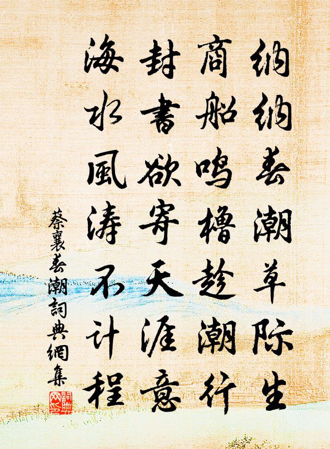 詩詞名句歷史字典書法欣賞書法字典國語詞典說文解字康熙字典古漢語字典標 題 作 者 詩 句 春潮作者:蔡襄 朝代:宋代春潮原文納納春潮草際生,商船鳴櫓趁潮行。封書欲寄天涯意,海水風濤不計程。詩詞問答問:春潮的作者是誰?答:蔡襄問:春潮寫於哪個朝代?答:宋代蔡襄春潮書法欣賞春潮書法作品詩詞推薦宿青山館許棠〔唐代〕下馬青山下,無言有所思。雲藏李白墓,苔暗謝公詩。烈燒飛荒野,棲鳧宿廣陂。東來與西去,皆是不閒時。題東甌王友直尚友堂魏了翁〔宋代〕土恨生世晚,不為三代民。誰知伊傅至孔孟,亦學古道嗤時人。豈惟三代時,堯舜萬古師。猶雲若稽古,不知古為桃源憶故人史達祖〔宋代〕雙鴛蹙月天津近。歸後嫩情常剩。燈市一年愁凝。心共梅花冷。網塵洞戶春沈靜。衰盡冶遊情性。羞見素娥嬌影。重送劉伯瑞二首趙蕃〔宋代〕連朝細讀遠齋詩,感舊傷今意可知。陶寫要憑杯麵綠,蕭條只益鏡中絲。人生未哆乖離恨,君雲足寬兄弟思。驥未酬令狐留守尚書見贈十韻白居易〔唐代〕長慶清風在,夔龍燮理余。太和膏雨降,周邵保厘初。嵩少當宮署,伊瀍入禁渠。曉關開玉兔,夕鑰納銀魚。舊眷競渡櫂歌黃公紹〔宋代〕賀靈鼉,賀靈鼉,幾年翠舞與珠歌。看到日斜猶未足,涌金門外涌金波。春過鄱陽湖貫休〔唐代〕百慮片帆下,風波極目看。吳山兼鳥沒,楚色入衣寒。過此愁人處,始知行路難。夕陽沙島上,回首一長嘆。草堂寺詩陳堯咨〔宋代〕□□□跡□禪關,□殿清虛檜影間。客□□臨來此境,僧□興廢指前山。醉聞溪溜吟懷□,坐對嵐峰世慮閒。他日滕王閣次韻劉允叔戴復古〔宋代〕消遣客懷尋勝事,酒杯詩卷得同攜。當年傑閣棲龍子,今日空梁落燕泥。斜照浴紅秋水上,好山橫碧畫欄西。幾人泗州南山贈呂少馮吳則禮〔宋代〕跛跛踐危磴,行行把長蘿。撫茲都梁岑,睨彼淮水波。花木春娬麗,杖屨吾蹉跎。輦轂端不遠,舟楫今如何。寒泉漁家傲(從叔父乞蘇州濕紅箋)陳師道〔宋代〕一舸姑蘇風雨疾。吳箋滿載紅猶濕。色潤朝花光觸日。人未識。街南小阮應先得。青入柳條初著色。溪梅已露春消挽羅榷院子遠劉應鳳〔宋代〕共說門庭王謝盛,誰知骨相島郊窮。躬行自得前賢法,家禮猶還三代風。腳跡肯隨權要出,頭銜寧與濁流同。湖山秦樓月/憶秦娥黎廷瑞〔宋代〕醒人眼。一枝玉雪疏籬晚。疏籬晚。精神曠逸。風姿凝遠。幽香零亂無人管。依依春恨天涯滿。天涯滿。霜城戍角郡齋水閣閒書衰後文同〔宋代〕衰後常親藥餌,憂來頗憶林泉。身坐謝莊小閣,心游沈約東田。白鼉鳴張籍〔唐代〕天欲雨,有東風,南谿白鼉鳴窟中。六月人家井無水,夜聞鼉聲人盡起。湧泉閣釋紹曇〔宋代〕肆無礙辯若懸河,尺水能興萬丈波。平地無端立層級,登高人少逐流多。再次贈張學錄韻十詩陳造〔宋代〕杜陵深堂奧,無己掉臂入。裔孫漫睎驥,槃姍取拾級。梅聖俞詩集序歐陽修〔宋代〕予聞世謂詩人少達而多窮,夫豈然哉?蓋世所傳詩者,多出於古窮人之辭也。凡士之蘊其所有,而不得施於世者,浣溪沙陳允平〔宋代〕六幅蒲帆曉渡平。一江星斗漸西傾。離家才是兩三程。浦外野花如喚客,樹頭春鳥自呼名。五雲深處錦官城。偈頌二十首釋如珙〔宋代〕曉來雲過闌乾濕,手把圓珠獨自立。聲聲稱念南無佛,佛道現前不成佛。名句推薦借問漢宮誰得似,可憐飛燕倚新妝。李白《清平調·其二》 墦間人散後,烏鳥正西東。范成大《清明日狸渡道中》 不經一番寒徹骨,怎得梅花撲鼻香。黃櫱禪師《上堂開示頌》 移風易俗,莫善於樂。孔子及其弟子《孝經·廣要道》 何處飛來林間鵲,蹙踏松梢微雪。辛棄疾《賀新郎·把酒長亭說》 清風明月苦相思,盪子從戎十載餘。王維《伊州歌》 不知戒,後必有,恨後遂過不肯悔,讒夫多進荀子《荀子·成相》 可憐閨里月,長在漢家營。沈佺期《雜詩三首·其三》 郭門臨渡頭,村樹連谿口。王維《新晴野望》 抽刀斷水水更流,舉杯消愁愁更愁。李白《宣州謝朓樓餞別校書叔雲》