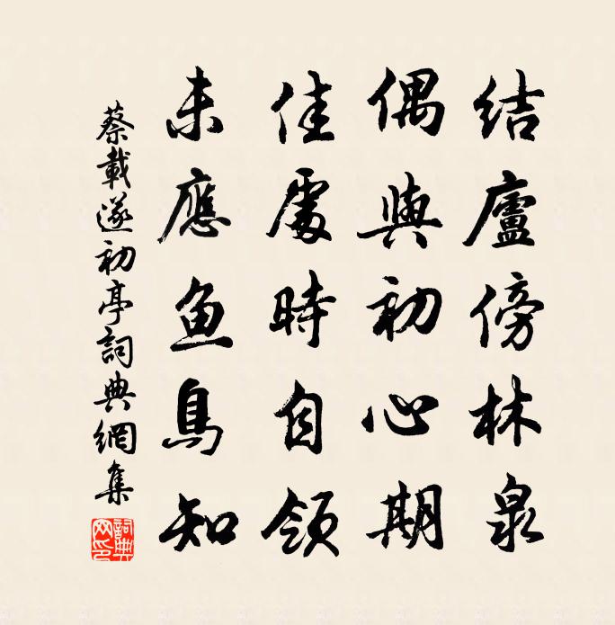 詩詞名句歷史字典書法欣賞書法字典國語詞典說文解字康熙字典古漢語字典標 題 作 者 詩 句 遂初亭作者:蔡載 朝代:宋代遂初亭原文結廬傍林泉,偶與初心期。佳處時自領,未應魚鳥知。詩詞問答問:遂初亭的作者是誰?答:蔡載問:遂初亭寫於哪個朝代?答:宋代蔡載遂初亭書法欣賞遂初亭書法作品詩詞推薦蝶戀花佚名〔宋代〕深炷熏爐小扃院。手捻黃花,尚覺金猶淺。回首畫堂雙語燕。無情漸漸看人遠。相見爭如初不見。短鬢潘郎,斗覺相和歌辭采菱行劉禹錫〔唐代〕白馬湖平秋日光,紫菱如錦彩鸞翔。蕩舟游女滿中央,采菱不顧馬上郎。爭多逐勝紛相向,時轉蘭橈破輕浪。長鬟頌古十一首釋子益〔宋代〕心手相忘,二俱得妙,箭箭中的。未脫窠臼脫窠臼,好手手中呈好手。送鮮于都曹歸灌口舊居蘇軾〔宋代〕籋盡霜須照碧銅,依然春雪在長松。朝行犀浦催收芋,夜渡繩橋看伏龍。莫嘆倦遊無駟馬,要將老健敵千鍾。子云山頭春色司馬光〔宋代〕天意欲回煦,群生稍郁烝。平田猶未遍,絕嶺獨先升。翠色添崖柏,寒聲拍澗冰。誰為物外友,挈手共同登。送李大夫渡口阻風戴叔倫〔唐代〕浪息定何時,龍門到恐遲。輕舟不敢渡,空立望旌旗。詰燕戴復古〔宋代〕去年汝來巢我屋,梁間污泥高一尺。啄腥拋穢不汝厭,生長群雛我護惜。家貧惠愛不及人,自謂於汝獨有力。不望次韻答賈耘老蘇軾〔宋代〕五年一夢南司州,饑寒疾病為子憂。東來六月井無水,仰看古堰橫奔牛。平生管鮑我知子,今日陳蔡誰從丘。夜航和朱主簿四首劉克莊〔宋代〕君思清如許,吾詩淺矣哉。不能具芻飯,虛辱受瓊瑰。伊洛推游謝,韓歐賞孟梅。武夷老仙伯,相引上蓬萊。歙溪道中周耕雲〔宋代〕行行欲少歇,爭奈客途長。村酒略無味,野花空自香。幾家茅屋小,數畝麥田荒。何處堪投宿,林梢已夕陽。歸山釋如珙〔宋代〕衰老歸山寮,山寮無雜事。柴床石枕頭,長伸兩腳睡。寒拾約不來,豐乾騎虎至。虎性本不馴,蒼苔郁踏碎。春風送石揚休還蜀歐陽修〔宋代〕長愛謫仙夸蜀道,送君西望重吟喔。路高黃鵠飛不到,花發杜鵑啼更多。清禁寒生鳳池水,繡衣榮照錦江波。昔年自近村歸陸游〔宋代〕雪晴村路尚殘泥,茅屋清寒正要低。野渡船虛飛鳥集,煙村路近蹇驢嘶。堅頑那復愁空橐,老健猶能伴架犁。蹴榻樓居狂吟吳龍翰〔宋代〕樓間丹壁富藏書,誤學相如賣子虛。何不買牛勤教子,邵平瓜地要人鋤。呈葛撫州二首趙蕃〔宋代〕人物與江山,風流知比肩。家聲自勾漏,出守更臨川。美政人人說,新詩句句傳。五言成漫興,一見豈無緣。晚庭宋庠〔宋代〕蒼霤秋霖歇,高軒夕景遲。桐凋金井恨,蘭老玉琴悲。巢燕寒初失,風蟬晚屢移。黃昏禽語鬧,相喚宿何枝。春物姜特立〔宋代〕一春天富貴,萬象物光華。遙想西湖上,風流賣酒家。少年游(黃鐘樓月)周邦彥〔宋代〕檐牙縹緲小倡樓。涼月掛銀鉤。聒席笙歌,透簾燈火,風景似揚州。當時面色欺春雪,曾伴美人游。今日重來,更柳梢青(秋日感興)張鎡〔宋代〕煙淡波平。蓬鬆岸蓼,紅淺紅深。滿院西風,連宵良月,幾處清砧。區區宦海浮沈。幸隱去、將愁素心。兩鬢吳霜龍池春草陳翊〔唐代〕青春光鳳苑,細草遍龍池。曲渚交蘋葉,回塘惹柳枝。因風初苒苒,覆岸欲離離。色帶金堤靜,陰連玉樹移。日光名句推薦鴻雁在雲魚在水。惆悵此情難寄。晏殊《清平樂·紅箋小字》 不及夜台塵土隔,冷清清、一片埋愁地納蘭性德《金縷曲·亡婦忌日有感》 桃花塢裏桃花庵,桃花庵裏桃花仙。唐寅《桃花庵歌》 著葉滿枝翠羽蓋,開花無數黃金錢杜甫《秋雨嘆三首》 言極則怒,怒則說者危。呂不韋《呂氏春秋·論·貴直論》 同來望月人何處?風景依稀似去年。趙嘏《江樓舊感 / 江樓感舊》 有功於前,有敗於後,不為損刑。有善於前,有過於後,不為虧法。商鞅《商君書·賞刑》 而今燈漫掛。不是暗塵明月,那時元夜。蔣捷《女冠子·元夕》 編草結庵,不違涼暑。蕭子顯《南齊書·列傳·卷四十》 情往似贈,興來如答。劉勰《文心雕龍·物色》