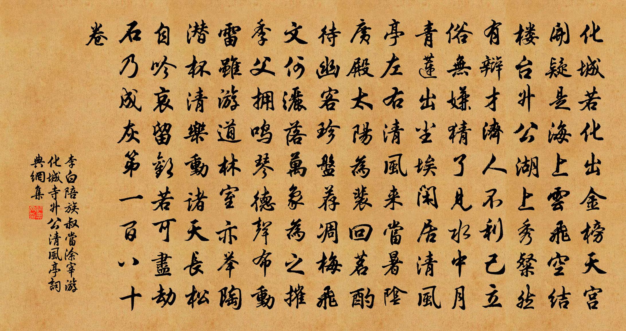 問:《陪族叔當塗宰游化城寺升公清風亭》的作者是誰?答:李白