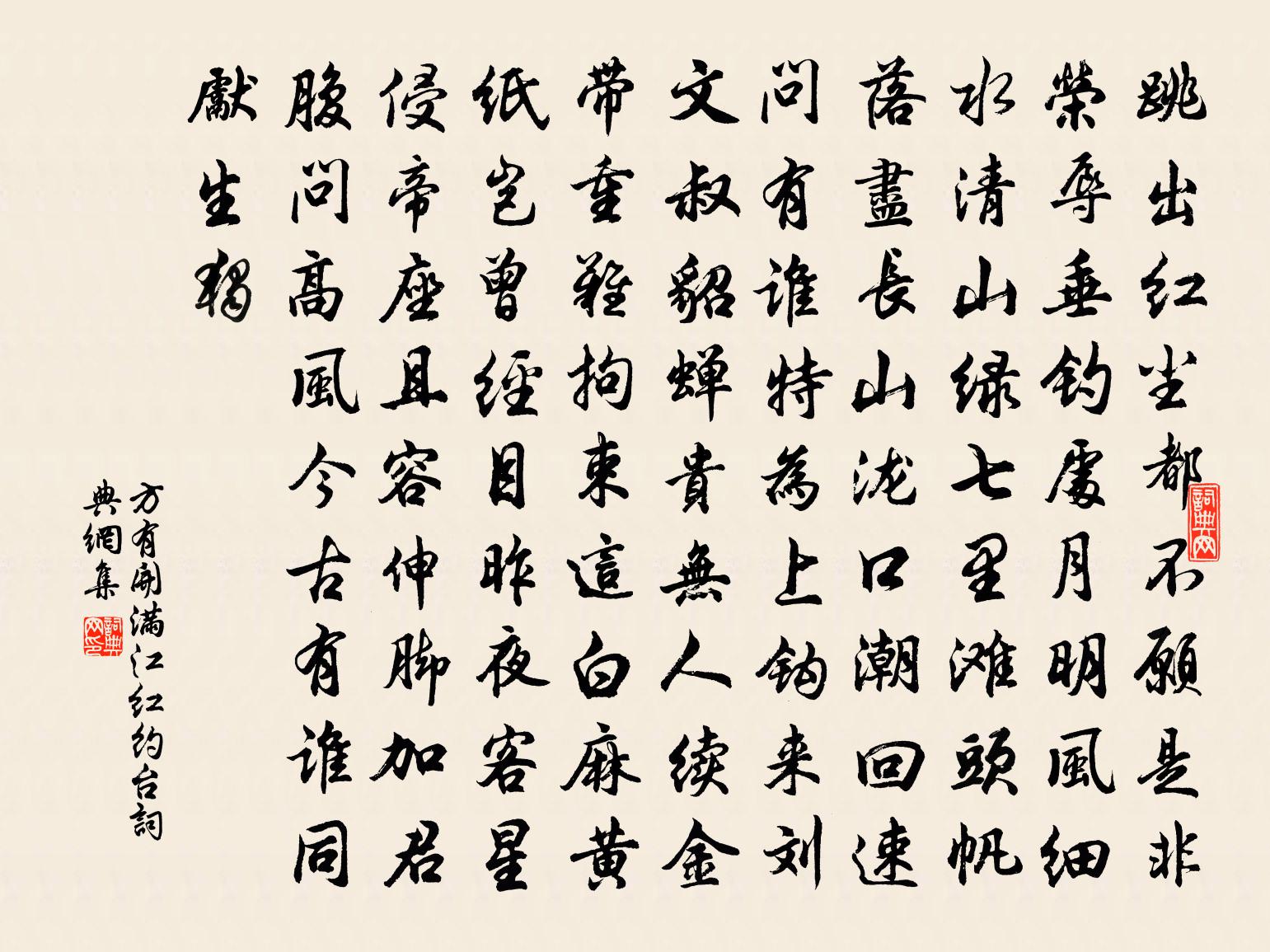 詩詞名句歷史字典書法欣賞書法字典國語詞典說文解字康熙字典古漢語字典標 題 作 者 詩 句 滿江紅(約台)作者:方有開 朝代:宋代滿江紅(約台)原文跳出紅塵,都不願、是非榮辱。垂釣處、月明風細,水清山綠。七里灘頭帆落盡,長山瀧口潮回速。問有誰、特為上鉤來,劉文叔。貂蟬貴,無人續。金帶重,難拘束。這白麻黃紙,豈曾經目。昨夜客星侵帝座,且容伸腳加君腹。問高風、今古有誰同,先生獨。詩詞問答問:滿江紅(約台)的作者是誰?答:方有開問:滿江紅(約台)寫於哪個朝代?答:宋代方有開滿江紅(約台)書法欣賞滿江紅(約台)書法作品詩詞推薦奉和聖制送張說上集賢學士賜宴得茲字蘇頲〔唐代〕肅肅金殿里,招賢固在茲。鏘鏘石渠內,序拜亦同時。宴錫歡談道,文成貴說詩。用儒今作相,敦學舊為師。下際謝潔齋惠爐瓶馬廷鸞〔宋代〕宴坐渾如槁木枝,罏煙瓶蕊小窗宜。書慵捲起閒今古,回向心源不動時。青玉案(餞別劉恭父)張孝祥〔宋代〕紅塵冉冉長安路。看風度、凝然去。唱徹陽關留不住。甘棠庭院,芰荷香渚。儘是相思處。龜魚從此誰為主。好記一寸金李彌遜〔宋代〕仙李盤根,自有雲仍靄芳裔。更留雨霜皮,臨風玉樹,紫髯丹頰,長生久視。鶴帳琅書至。長庚夢、當年暗記。佳淮甸春(寓念奴嬌丙申歲游高沙,訪淮海事跡)張輯〔宋代〕短髯懷古,更文游台上,秋生吟興。聞說坡仙來把酒,月底頻留清影。極目平蕪,孤城四水,畫角西風勁。曲闌猶入湧泉道中程師孟〔宋代〕舟行如葉泛長川,解水吳兒力可全。風急輒先千浪破,岸欹能把一{上竹下亶}牽。湖沈日影山頭畫,雲漏天光雨鴛鴦湖棹歌 之六十九朱彝尊〔清代〕巫子峰晴返景開,傳聞秦女葬山隈。閒聽野老沙中語,曾有毛民海上來。聞襲美有親迎之期因以寄賀陸龜蒙〔唐代〕梁鴻夫婦欲雙飛,細雨輕寒拂雉衣。初下雪窗因眷戀,次乘煙幰奈光輝。參差扇影分華月,斷續簫聲落翠微。見說和公儀龍圖新居栽竹二首梅堯臣〔宋代〕都城有地誰栽竹,只見寒樗與老槐。聞種琅玕向新第,翠光秋影上屏來。游普向十首陳造〔宋代〕崇岡回首路縈盤,夕照明邊小憑欄。船合淺沙催客上,玻璃影里見長安。春日書齋偶成五首李彌遜〔宋代〕桃紅半老杏紅衰,亂委蒼苔況是梅。不恨狂風取花去,一樽寒食為誰開。種蠟梅喜成張鎡〔宋代〕道帝方訝撲人香,金蓓花開滿擔裝。尚有松釵佳枝杪,買歸偏稱插山堂。次韻蒲大受書懷十首郭印〔宋代〕時亂那能定,民生不自聊。鬢霜秋冉冉,心旆日搖搖。敢簉鵷鴻侶,空貽猿鶴嘲。眼前誰可意,風月是清交。暮春黃庚〔宋代〕東風庭院夕陽天,恨綠愁紅又一年。春自要歸花自落,莫將芳事怨啼鵑。臨江仙 繼重陽韻馬鈺〔元代〕大悟立身蓑笠好,遇投相應回頭。訓予全道號無憂。慧眸觀玉洞,雲步上瓊樓。赤雁頭鑽清宴地,白鷗足捧浮漚。送直閣劉郎中知平江府沈繼祖〔宋代〕星郎星使兩俱優,三輔黃圖帝選侯。萬里登滬超弱水,一輪有月照蘇州。刀飛雪縷夸鱸膾,雲作奇峰簇虎丘。太守【雙調】凌波仙鍾嗣成〔元代〕菊栽栗里晉淵明,瓜種青門漢邵平,愛月香水影林和靖,憶蓴鱸張季鷹,占清高總是虛名。光祿酒扶頭醉,大官羊適意王安石〔宋代〕一燈相伴十餘年,舊事陳言知幾編。到了不如無累後,困來顛倒枕書眠。句諶祜〔宋代〕梁有字題何歲月,藏無經在亦香鐙。癖性釋文珦〔宋代〕癖性唯耽靜,溪山占一坳。小橋橫獨水,矮屋蓋重茅。坎井寒泉冽,深蹊密陰交。閒門終日掩,不許俗人敲。名句推薦橫眉冷對千夫指,俯首甘為孺子牛。魯迅《自嘲》 清風明月無人管,並作南樓一味涼。黃庭堅《鄂州南樓書事》 行人莫問當年事,故國東來渭水流。許渾《鹹陽城東樓 / 鹹陽城西樓晚眺 / 西門》 客愁全為減,舍此復何之?杜甫《後游》 後庭花一曲,幽怨不堪聽。劉禹錫《金陵懷古》 俱往矣,數風流人物,還看今朝。 * 《沁園春·雪》 雲邊雁斷胡天月,隴上羊歸塞草煙。溫庭筠《蘇武廟》 以銅為鑑,可整衣冠;以古為鑑,可知興替。程登吉《幼學瓊林·卷三·器用》 鳥下綠蕪秦苑夕,蟬鳴黃葉漢宮秋。許渾《鹹陽城東樓 / 鹹陽城西樓晚眺 / 西門》 不系雕鞍門前柳,玉容寂寞見花羞,冷風兒吹雨黃昏後。喬吉《春閨怨·不系雕鞍門前柳》