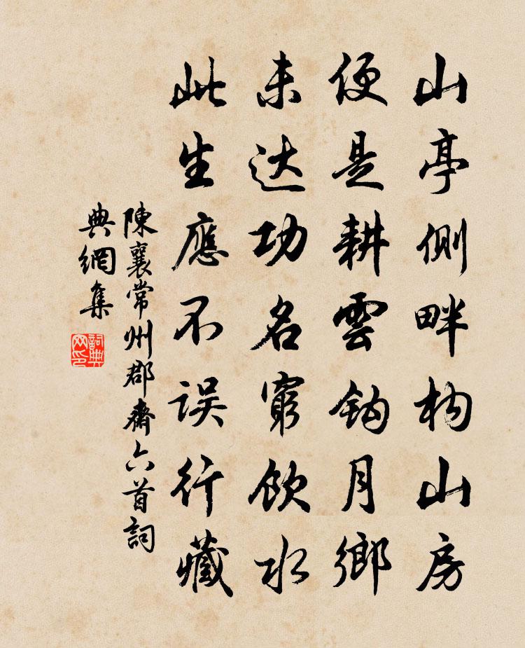 詩詞名句歷史字典書法欣賞書法字典國語詞典說文解字康熙字典古漢語字典標 題 作 者 詩 句 常州郡齋六首作者:陳襄 朝代:宋代常州郡齋六首原文山亭側畔構山房,便是耕雲鉤月鄉。未達功名窮飲水,此生應不誤行藏。詩詞問答問:常州郡齋六首的作者是誰?答:陳襄問:常州郡齋六首寫於哪個朝代?答:宋代陳襄常州郡齋六首書法欣賞常州郡齋六首書法作品詩詞推薦北風楊萬里〔宋代〕山雨無休歇,江雲政郁蔥。如何急灘水,更著打頭風。草作傷心碧,花能可意紅。一年春好處,卻在道塗中。花娘歌梅堯臣〔宋代〕花娘十二能歌舞,籍甚聲名居樂府。荏苒其間十四年,朝作行雲暮行雨。格夫氣俊能動人,人能動之無幾許。前歲三月十七日以檄出行賑貸旬日而復反自州門至趙蕃〔宋代〕大麥初齊積漸黃,青青小麥更連岡。去冬屢雪有如此,今歲一豐端可望。負籠不須嗟甚苦,腰鎌行且看爭忙。太倉蘭花供壽國舉兄陳傅良〔宋代〕山丹吹出青藜火,金蝶窺叢何妸娜。朱槿更作猩袍紅,夸道風人嘗印可。沒利從旁粲然笑,奄有諸香誰似我。素馨酬陸三與鄒十八侍御武元衡〔唐代〕城分流水郭連山,拂露開懷一解顏。令尹關中仙史會,河陽縣裡玉人閒。共憐秋隼驚飛至,久想雲鴻待侶還。莫恨聞蟋蟀有感范姝〔清代〕秋聲聽不得,況爾發哀聞。遊子他鄉淚,空閨此夜心。 已憐裝閣靜,還慮塞亘深。蕭瑟西風緊,行看霜雪侵。 送兒沆赴昌國學錄陳著〔宋代〕來汝沆,吾語汝。蓬萊鄉,仙者寓,汝行豈為求仙故。寶陀山,佛者住,汝今豈為禮佛去。吾聞滃洲好學舍,兵後詠雙陸骰子朱灣〔唐代〕采采應緣白,鑽心不為名。掌中猶可重,手下莫言輕。有對唯求敵,無私直任爭。君看一擲後,當取擅場聲。【越調】寨兒個張可久〔元代〕道士王中山操琴傍翠陰,解塵襟,婆娑小亭深又深。軫玉徽金,霞佩瓊簪,一操《醉翁吟》。野猿啼雪滿遙岑,玄詠史二首吳名揚〔宋代〕讀書慕聖賢,禔躬凜蒼昊。世事重且艱,一一縈懷抱。白日忽西頹,山枯山木槁,魯陽漫揮戈,杞國憂如搗。人或和劉道原詠史蘇軾〔宋代〕仲尼憂世接輿狂,臧谷雖殊竟兩亡。吳客漫陳豪士賦,桓侯初笑越人方。名高不朽終安用,日飲無何計亦良。獨掩送職方張員外領荊湖北漕宋庠〔宋代〕粉闥仙郎鬢未秋,懿文精力允僉求。新榮毫忌祠神館,更按喬卿露冕州。楚匭貢茅紛騎置,蜀艘移粟蔽江流。富人客有見過者既去喟然有作陸游〔宋代〕鬢毛俱白盡,事不補秋毫。去死今無幾,歸耕何足高。已知陶止酒,徒勸屈餔糟。惟有滄溟去,揚帆觀雪濤。梅花陳景沂〔宋代〕平生足跡遍天下,正一東嘉卻弗來。行到劉山無所寄,謾留冷句伴江梅。孤憤吟十三首高斯得〔宋代〕掃除學法啗諸生,精銳銷磨直可坑。乞斬三奸亦人爾,汝曹何忍負齋黌。昨晚又捧五章盡含六義意轉新而韻皆緊才益贍李至〔宋代〕吾宗偉量固難如,萬頃澄波更有餘。吟遍人寰四時景,讀窮仙館百王書。青山綠水牽情切,要路權門著意疏。只恐偈頌一百一十七首釋紹曇〔宋代〕大悲正眼露堂堂,因此步當搖閃電光。被制風顛醫瞎子,暗中拖拽下禪段床。陌上花三首(並引)蘇軾〔宋代〕游九仙山,聞里中兒歌《陌上花》。父老云:吳越王妃每歲春必歸臨安,王以書遺妃曰:"陌上花開,可緩緩歸矣和戴禹功幕府歸來三首王之道〔宋代〕客里詩成付漫書,清風一榻黑甜余。相山舊隱今分定,卻是歸來計不疏。曉月未沒順風泛太湖期以明日與悅齋會程公許〔宋代〕明月酒伴我酒家眠酒,五更順酒風催放船酒。月波盪湖湖欲溢,扶桑奪染半天赤。湖山破曉郁青蒼,坐覺山與船低名句推薦微陽下喬木,遠色隱秋山。馬戴《落日悵望》 夜飲東坡醒復醉,歸來仿佛三更。家童鼻息已雷鳴。蘇軾《臨江仙·夜飲東坡醒復醉》 一信字是立身之本,所以人不可無也王永彬《圍爐夜話·第六則》 日射紗窗風撼扉,香羅拭手春事違。李商隱《日射》 謝亭離別處,風景每生愁。李白《謝公亭·蓋謝朓范雲之所游》 兩句三年得,一吟雙淚流。賈島《題詩後》 蓼岸荻花中,隱映竹籬茅舍。張昪《離亭燕·一帶江山如畫》 胡沙沒馬足,朔風裂人膚。韋元甫《木蘭歌》 況是青春日將暮,桃花亂落如紅雨。李賀《將進酒》 口惠而實不至,怨菑及其身。戴聖《禮記·表記》