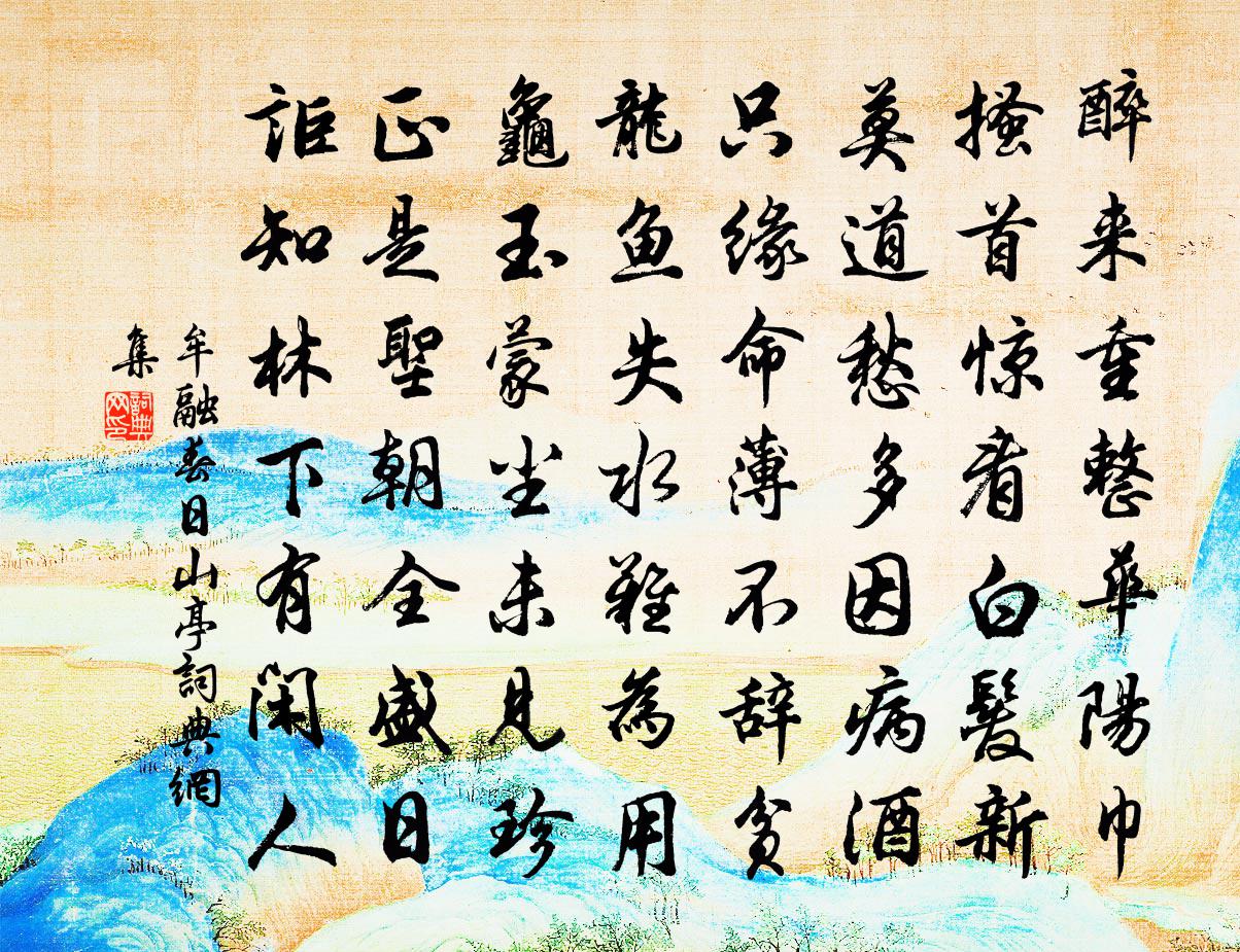詩詞名句歷史字典書法欣賞書法字典國語詞典說文解字康熙字典古漢語字典標 題 作 者 詩 句 春日山亭作者:牟融 朝代:唐代春日山亭原文醉來重整華陽巾,搔首驚看白髮新。莫道愁多因病酒,只緣命薄不辭貧。龍魚失水難為用,龜玉蒙塵未見珍。正是聖朝全盛日,詎知林下有閒人。詩詞問答問:春日山亭的作者是誰?答:牟融問:春日山亭寫於哪個朝代?答:唐代問:春日山亭是什麼體裁?答:七律牟融春日山亭書法欣賞春日山亭書法作品注釋全唐詩:卷467-1詩詞推薦和新市雜詠趙希逢〔宋代〕離愁別恨滿滄洲,區馬匆匆去莫留。山盡回頭人不見,齊云何日貯高樓。上已同沈虞卿、尤延之、王順伯、林景思游湖楊萬里〔宋代〕孤山山後北山前,十里長堤隔兩邊。一行垂楊綠無縫,石橋通處過春船。孤學陸游〔宋代〕孤學雖違俗,猶為一腐儒。家貧占力量,夜夢驗工夫。正復安三徑,寧忘奏六符?殘年知有幾,自怪尚區區。近聞杜甫〔唐代〕近聞犬戎遠遁逃,牧馬不敢侵臨洮。渭水逶迤白日淨,隴山蕭瑟秋雲高。崆峒五原亦無事,北庭數有關中使。似聞導引佚名〔宋代〕乘雲英聖,千載仰皇靈。垂法藹朝經。禹金熔范肖儀刑。日角煥珠庭。琳宮翠殿鳳文屏。迎奉慶安寧。孝思瞻謁薦乙丑元日口號十首劉克莊〔宋代〕痴呆已肖木雞狀,行走不減竹馬時。太平期恰當今日,嬉戲翁渾如小兒。二公再和亦再答之蘇軾〔宋代〕寒雞知將晨,飢鶴知夜半。亦如老病客,遇節常感嘆。光陰等敲石,過眼不容玩。親友如摶沙,放手還復散。羈孤秋晚客興(或為沈括作)蘇軾〔宋代〕草滿池塘霜送梅,疏林野色近樓台。天圍故越侵雲盡,潮上孤城帶月回。客夢冷隨楓葉斷,愁心低逐雁行來。流年馬融石室蘇軾〔宋代〕未應將軍聘,初從季直游。絳紗生不識,蒼石尚能留。豈害依梁冀,何須困李侯。吾詩慎勿刻,猿鶴為君羞。青玉案 戊戌元元宵客京師賦張野〔元代〕千門夜色霏香霧。又春滿、朝天路。回首舊遊誰與語。金波影里,水晶簾下,總是關心處。征衫著破愁成縷。留滯游淨居寺(並敘)蘇軾〔宋代〕淨居寺,在光山縣南四十里大蘇山之南、小蘇山之北。寺僧居仁為余言:齊天保中,僧思惠過此,見父老問其姓,水雲遊 韓公索嘆世王哲〔元代〕且聽且聽。汨汨塵勞,如何得醒。女男是、玉*金枷,把身軀縛定。百年韶景風燈影。怎留他光瑩。早悟斯、疾速病告作寄武平湖內翰宋祁〔宋代〕病擁綈袍雪領垂,當關重疊報晨暉。夷吾畏事將成吃,蘧瑗增年轉悟非。宦路風波頻歲劇,故山薇蕨每春肥。餘生偶成姜特立〔宋代〕膩白矢紅漸滿枝,倡條冶葉況紛披。化工只解呈新巧,惱殺衰翁都不知。禪人並化主寫真求贊釋正覺〔宋代〕皮蒼老松,色暗焦桐。微塵塵破,一印印空。大千經卷鍾出礙,三世佛口谷吞風。六門了用,雙眉有功。冬日張耒〔宋代〕忽忽新冬無一旬,自憐憔悴楚江濱。滿前魑魅何曾御,尚愧無功作逐臣。早秋寄友生齊己〔唐代〕雨多殘暑歇,蟬急暮風清。誰有閒心去,江邊看水行。河遙紅蓼簇,野闊白煙平。試折秋蓮葉,題詩寄竺卿。將歸江淮書(一作冬歸有感)張喬〔唐代〕東風搖眾木,即有看花期。紫陌頻來日,滄洲獨去時。郡因兵役苦,家為海翻移。未老多如此,那堪鬢不衰。江北梅開殊晚和林實之別駕韻孫應時〔宋代〕許氏南園十裡間,蹉跎勝賞 * 。寄聲行客如回首,莫把尋常醉眼看。游黃山次韻程元岳〔宋代〕謾宿林間夜對床,鍾魚衍度幾星霜。月高花影頻開畫,鳳動松聲自鼓簧。人事縣知春日好,禪心不作少年狂。重來名句推薦糝徑楊花鋪白氈,點溪荷葉疊青錢。杜甫《絕句漫興九首·其七》 天明登前途,獨與老翁別。杜甫《石壕吏》 世界微塵里,吾寧愛與憎。李商隱《北青蘿》 喃喃教言語,一一刷毛衣。白居易《燕詩示劉叟》 去年夜半橫江夢,倚危檣,參差曾賦劉辰翁《桂枝香· * 人去》 竹深樹密蟲鳴處,時有微涼不是風。楊萬里《夏夜追涼》 坐上別愁君未見,歸來欲斷無腸。蘇軾《臨江仙·送王緘》 風風雨雨梨花,窄索簾櫳,巧小窗紗。喬吉《折桂令·客窗清明》 但恨處非位,愴悢使心傷。阮籍《詠懷八十二首·其七十九》 世上無難事,只怕不專心。佚名《增廣賢文·下集》
