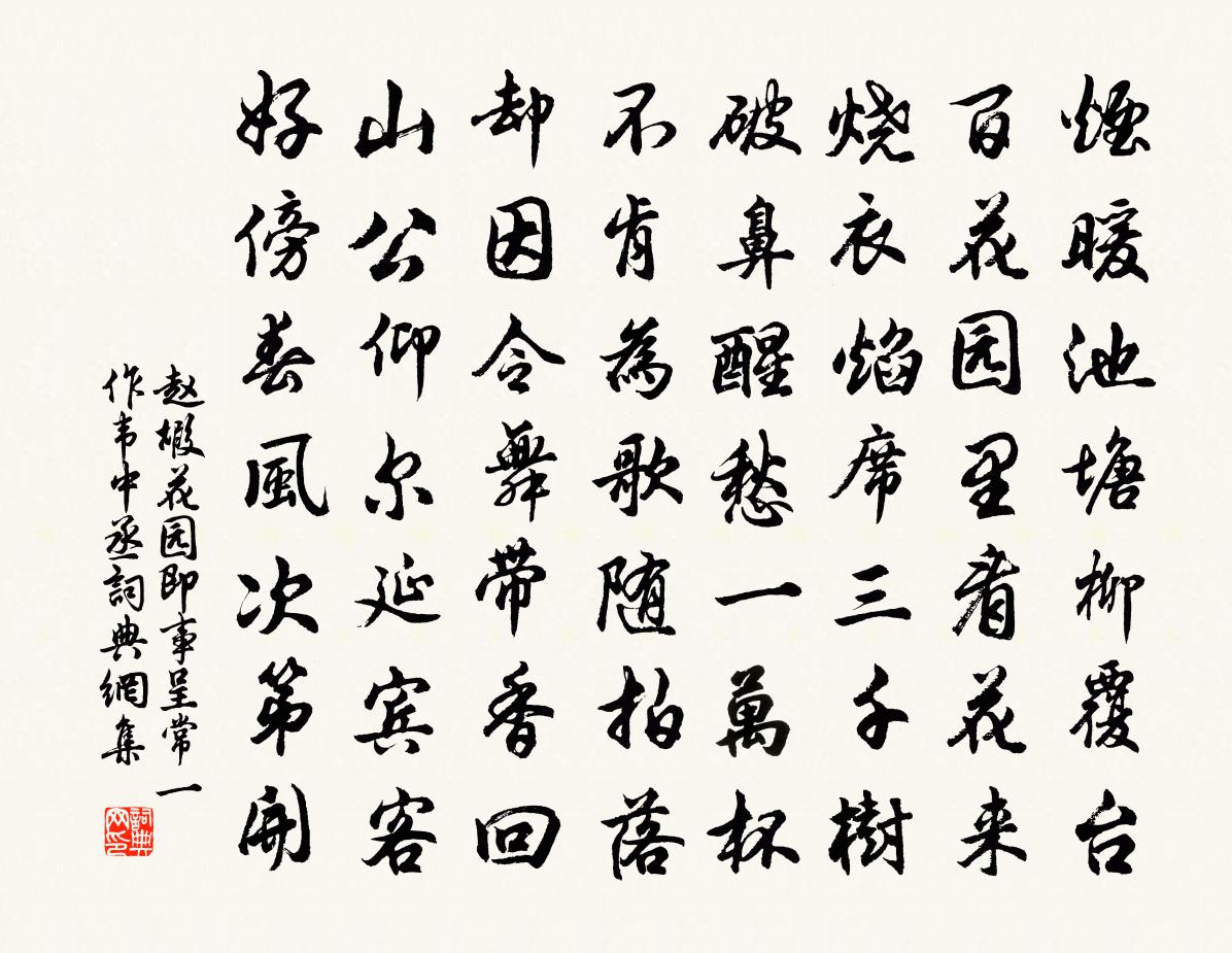 煙暖池塘柳覆台,百花園裡看花來。燒衣焰席三千樹,破鼻醒愁一萬杯。