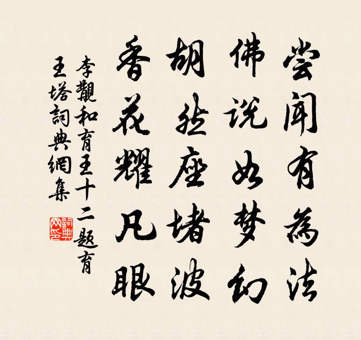 詩詞名句歷史字典書法欣賞書法字典國語詞典說文解字康熙字典古漢語字典標 題 作 者 詩 句 和育王十二題育王塔作者:李覯 朝代:宋代和育王十二題育王塔原文嘗聞有為法,佛說如夢幻。胡然座堵波,香花耀凡眼。詩詞問答問:和育王十二題育王塔的作者是誰?答:李覯問:和育王十二題育王塔寫於哪個朝代?答:宋代李覯和育王十二題育王塔書法欣賞和育王十二題育王塔書法作品詩詞推薦陪趙公子游蔣山即席次李五峰韻陳旅〔元代〕弭棹丹陽郭,鳴鞭白下山。晴原煙翳翳,幽樹鳥關關。石液玻璃碧,雲根瑪瑙殷。佛岩開細菊,僧逕入從菅。雨洗雜詠一百首盧能劉克莊〔宋代〕明鏡偷神秀,菩提犯臥輪。更將舊衣缽,占斷不傳人。子敬見和食雪詩仍次前韻曹彥約〔宋代〕色如姑射未全真,消得新詩膾炙人。冰不待藏須潔齒,凍何須解要濡唇。烹茶尚有虀監味,食櫱難夸麴米春。勝欲示周尉胡寅〔宋代〕官酒不可求,村釀不足酤。似聞糟床注,滴瀝真珠露。載醪欲相過,好語亦已屢。梅花雖零落,殘雪尚可雇。足捉贈東鄰王十三白居易〔唐代〕攜手池邊月,開襟竹下風。驅愁知酒力,破睡見茶功。居處東西接,年顏老少同。能來為伴否?伊上作漁翁。丁未孟秋夜月明如中秋因思范公守南陽賞月及孫介〔宋代〕先生赤壁舟中賦,老子百花洲上歌。古人不負此明月,今我當如此月何。連宵風雨暑欲盡,碧玉萬里誰新磨。冰盤恭次家大人初抵海陵官舍元韻孫應時〔宋代〕風饕雪虐苦侵陵,已免寒舟問水程。葦屋虛檐交夜氣,邊城疏鼓逗天明。囊空尚可充飢色,官冷何妨遠市聲。且辨望金山用唐人韻薛靖〔宋代〕一柱支空立,濤聲春寺聞。消來巴地雪,飛到潤州雲。寂寞江山色,縱橫盜賊群。不堪形勝裹,北望涕紛紜。明道親享先農十首佚名〔宋代〕稼政之本,民食惟天。甫田兆幾,后稷其先。靈壇既祀,黛耜攸虔。乃聖能享,億萬斯年。程元成待制寵示和篇其自序用樂天尹洛並一漁周必大〔宋代〕侍冠早已掛朝堂,鄉縣榮標晝錦坊。尚記香山曾尹洛,更同魯國欲漁棠。春風醉客金絲緩,夜燭彈棋玉石忙。應笑訪約齋三絕姜特立〔宋代〕雲鏡亭前水滿陂,渚漚堤上翠成帷。煩君為我買笭箵,去作南湖踏浪兒。賓從集藕花堂分韻得園字二十韻劉學箕〔宋代〕流金爍石火燎燔,何地泄此畏暑袢。草堂幸有茆三間,冷浸十畝泉有源。泉音琮琤下空山,金石戛擊聲潺湲。太華巴江汪元量〔宋代〕巴□鼓櫂興悠悠,野鹿銜花出峽頭。網得巨魚堪切膾,攜觴重上荔枝樓。喜無可上人游山回賈島〔唐代〕一食復何如,尋山無定居。相逢新夏滿,不見半年余。聽話龍潭雪,休傳鳥道書。別來還似舊,白髮日高梳。清心鏡 瓜李喻馬鈺〔元代〕喜浮瓜,恐沉李。說破浮瓜,自然悟理。自今後、休炫文章,更不須講禮。水雲遊,遠鄉里。休修外表,唯修向里得古釋師範〔宋代〕麥已登場稻滿田,蕢桴土鼓樂平平。不知將謂羲皇世,元是天開寶慶年。離巫山好晴,午後入瞿唐關,憩高齊半日范成大〔宋代〕一昨題詩訴苦霖,果然連夜卷曾陰。盡收行雨瑤姬賜,不徇世情巫峽心。喜鵲滿枝朝日淡,哀猿何處宿雲深?水門登高趙湘〔唐代〕天晴九月九,秋思攪騰騰。大醉無人會,高山獨自登。看鴻時背水,採菊阻尋僧。往事還堪憶,狂吟罷未能。思成堂蘇軾〔宋代〕宰樹連山谷,祠堂照路隅。養松無觸鹿,助祭有馴烏。歸夢先寒食,兒啼到白須。遙知鄰里化,醉叟道爭扶。華陽吟三十首白玉蟾〔宋代〕昨夜三更雷撼山,九天門戶不曾關。曹溪路上分明見,有個金烏入廣寒。名句推薦國將興,必貴師而重傅荀子《荀子·大略》 海燕未來人鬥草,江梅已過柳生綿。黃昏疏雨濕鞦韆。李清照《浣溪沙·淡盪春光寒食天》 能者勞而俯怨,何如拙者逸而全真。洪應明《菜根譚·概論》 肅肅花絮晚,菲菲紅素輕。杜甫《春遠 / 春運》 魚書經歲絕,燭淚流殘月。徐燦《菩薩蠻·秋閨》 不言之教,無為之益,天下希及之。老子《老子·德經·第四十三章》 今日漢宮人,明朝胡地妾。李白《王昭君二首》 樹曲木者,惡得直景劉向《說苑·君道》 綠衣監使守宮門,一閉上陽多少春。白居易《上陽白髮人》 與朋友交,言而有信。孔子弟子《論語·學而篇》
