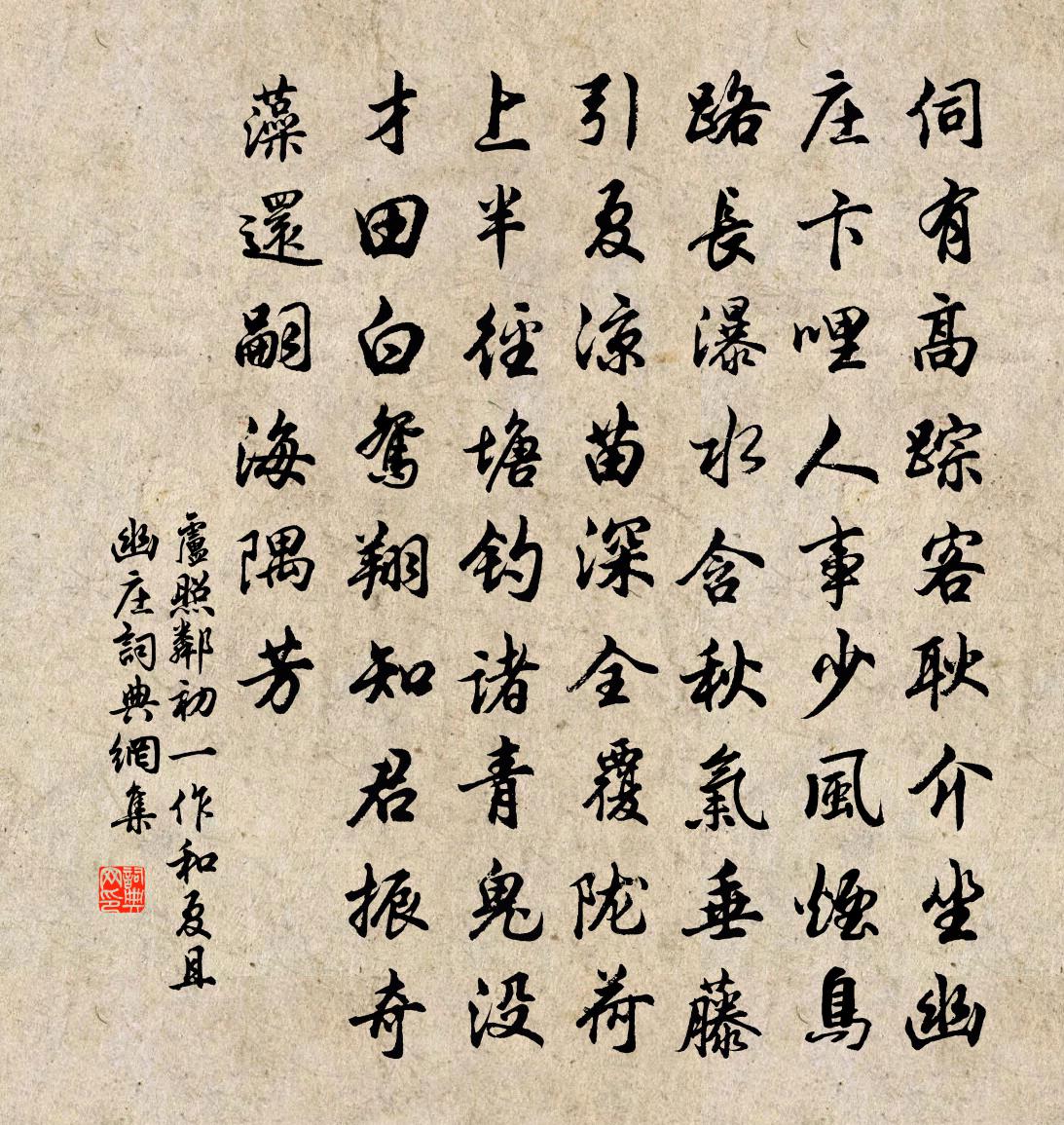伺有高蹤客,耿介坐幽莊。卞哩人事少,風煙鳥路長。