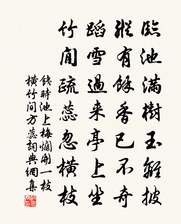 詩詞名句歷史字典書法欣賞書法字典國語詞典說文解字康熙字典古漢語字典標 題 作 者 詩 句 池上梅爛開一枝橫竹間方蕊作者:錢時 朝代:宋代池上梅爛開一枝橫竹間方蕊原文臨池滿樹玉離披,縱有餘香已不奇。蹈雪過來亭上坐,竹閒疏蕊忽橫枝。詩詞問答問:池上梅爛開一枝橫竹間方蕊的作者是誰?答:錢時問:池上梅爛開一枝橫竹間方蕊寫於哪個朝代?答:宋代錢時池上梅爛開一枝橫竹間方蕊書法欣賞池上梅爛開一枝橫竹間方蕊書法作品詩詞推薦題釣台二絕句楊萬里〔宋代〕同學書生已冕旒,未將換與一羊裘。子云到老不曉事,不信人間有許由。書懷示友十首陳與義〔宋代〕俗子令我病,紛然來座隅。賢士費懷思,不受折簡呼。城東陳盂公,久闊今何如。明月照天下,此夕與君俱。不難寄遠張迥〔唐代〕錦字憑誰達,閒庭草又枯。夜長燈影滅,天遠雁聲孤。蟬鬢凋將盡,虬髯白也無。幾回愁不語,因看朔方圖。花時遍游諸家園陸游〔宋代〕宣華無樹著啼鶯,惟有摩訶春水生。故老能言當日事,直將宮錦裹宮城。寓題杜牧〔唐代〕把酒直須判酩酊,逢花莫惜暫淹留。假如三萬六千日,半是悲哀半是愁。寄題儋耳東坡故居,尊賢堂太守譚景先所二首楊萬里〔宋代〕東坡無地頓危身,天賜黎山活逐臣。萬里鯨波隔希奭,千年桂酒吊靈均。精忠塞得乾坤破,日月伴渠文字新。秪個減字木蘭花陳瓘〔宋代〕大江北去。未到滄溟終不住。淮水東流。日夜朝宗亦未休。香爐煙裊。濃淡卷舒終不老。寸碧千鍾。人醉華胥月色題汪尉立之快合王炎〔宋代〕傍檐古木綠陰陰,下有清溪可洗心。燕坐紅塵飛不到,何須風過一披襟。送陳環秀才游金陵范仲淹〔宋代〕君有江南行,為君歌以喜。龍盤山萬曲,練靜江千里。江山不可空,台星照吳中。古來王謝地,今有周召風。而間送李伯和吏部提舉浙東伯珍寺丞將漕夔門樓鑰〔宋代〕奕奕君家好弟兄,皇華交映棣華明。幾年並列金閨彥,同日俱持玉節行。萬里往臨夔子國,一江先到越王城。會聞瑞鶴仙(壽秦伯和侍郎)朱耆壽〔宋代〕櫻桃抄乳酪。正雨厭肥梅,風忺吹籜。鹹瞻格天閣。見十眉環侍,爭鳴弦索。茶甌試瀹。更良夜、沈沈細酌。問間大都督制侍方岩先生召彭白飲於州治之春野白玉蟾〔宋代〕夕陽花木丹青活,煙月山林水墨昏。碧縷倦飛縈寶鼎,紅波驚漲溢金樽。掀髯醉接君謨筆,擊缶吟招子美魂。因逐季春周南〔宋代〕初篁欲迸籜,晚風微過之。斑苞初委地,永與琅玕辭。篁生五丈高,鳳吹鳴參差。隕籜膜已朽,不恨見竹遲。物成陳氏四芝圖項安世〔宋代〕當時一念繼元昆,誰附飛章告九閽。天聽直無多遠近,地靈頓有許便蕃。擬箋此事呈諸老,盍引斯人侍至尊。弭旱李悅夫劉文潛坐上醉歸作晁公溯〔宋代〕將老尚逐食,相逢聊舉觴。貧非原憲病,酒發次公狂。未至世臣國,先登君子堂。誰能更拘束,短髮已滄浪。華清宮四首吳融〔唐代〕中原無鹿海無波,鳳輦鸞旗出幸多。今日故宮歸寂寞,太平功業在山河。漁陽烽火照函關,玉輦匆匆下此山。一曲滿江紅(郡集觀舞)呂勝己〔宋代〕檀板頻催,雙捻袖、飛來趁拍。錦裀上、嬌抬粉面,淺蛾脈脈。鸞覷鶯窺秋水淨,鴻驚鳳翥祥雲白。看妖嬈、體態觱篥張祜〔唐代〕一管妙清商,纖紅玉指長。雪藤新換束,霞錦旋抽囊。並揭聲猶遠,深含曲未央。坐中知密顧,微笑是周郎。棲賢山訪戴叔倫隱處魏良臣〔宋代〕峰列洪都秀,名賢隱此間。亂煙橫古木,啼鳥戀深山。我亦尋詩到,人誰訪戴還。高吟今不見,流水自潺潺。燕歌行曹叡〔魏晉〕白日晼晼忽西傾。霜露慘淒塗階庭。秋草卷葉摧枝莖。翩翩飛蓬常獨征。有似遊子不安寧。名句推薦少年易老學難成,一寸光陰不可輕。朱熹《偶成》 盈盈一點芳心,占多少春光,問卿知否?紅妝莫斗顧太清《玉燭新·白海棠》 蜀江水碧蜀山青,聖主朝朝暮暮情。白居易《長恨歌》 望望不見君,連山起煙霧。李白《金鄉送韋八之西京》 颯颯東風細雨來,芙蓉塘外有輕雷。李商隱《無題·颯颯東風細雨來》 風水人間不可無,也須陰騭兩相扶。馮夢龍《醒世恆言·卷一》 塞雁高飛人未還,一簾風月閒。李煜《長相思·一重山》 江雨霏霏江草齊,六朝如夢鳥空啼。韋莊《台城》 繡面芙蓉一笑開,斜飛寶鴨襯香腮。李清照《浣溪沙·閨情》 驟雨過,珍珠亂撒,打遍新荷。元好問《驟雨打新荷》