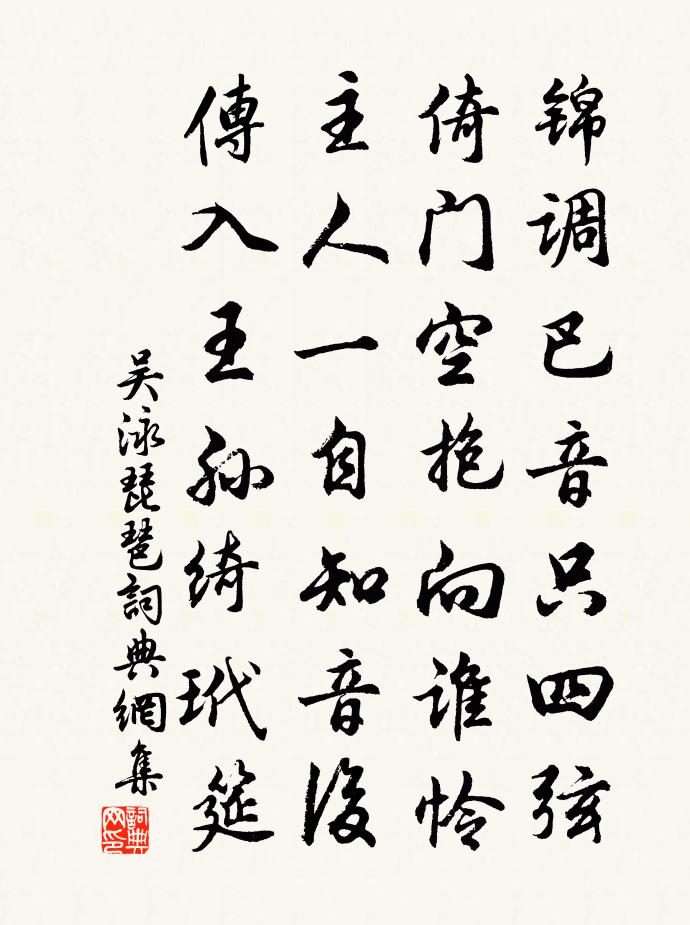 詩詞名句歷史字典書法欣賞書法字典國語詞典說文解字康熙字典古漢語字典標 題 作 者 詩 句 琵琶作者:吳泳 朝代:宋代琵琶原文錦調巴音只四弦,倚門空抱向誰憐。主人一自知音後,傳入王孫綺玳筵。詩詞問答問:琵琶的作者是誰?答:吳泳問:琵琶寫於哪個朝代?答:宋代吳泳琵琶書法欣賞琵琶書法作品詩詞推薦和吳九王二十八雪詩韓維〔宋代〕方冬氣潛溫,得晚陰始重。狂隨風力翻,怒若雲面涌。中微玉霏屑,後盛毛紛氄。寒光動城闕,甘滋入田壟。鵬騫螢火趙蕃〔宋代〕渾忘生朽腐,直擬暮光輝。解燭書帷靜,能添列宿稀。當風方自表,帶雨忽成微。變滅無多理,榮枯會一歸。一百五歌張耒〔宋代〕山民歲時事莽鹵,猶知拜掃一百五。平明士女出城闉,黃土岡前列尊俎。箬包粉餌蒸野蔬,富家烹羊貧薦魚。日暮和裴相公傍水閒行劉禹錫〔唐代〕為愛逍遙第一篇,時時閒步賞風煙。看花臨水心無事,功業成來二十年。四月二十四日雨中分酒餉山友舒岳祥〔宋代〕欲言林下趣,思共澗邊行。細雨枇杷熟,空江杜若生。離居非遠道,向夕自含情。偶此開松酒,分將一榼傾。婆羅門引 辛卯中秋望月張之翰〔元代〕宦遊南北,月明何處不相隨。十年九賦新詞。今夜清光如許。無以侑金*。想叨居此職,著甚推辭。臨風再思。是小重山(方元相生日)周紫芝〔宋代〕碧玉山圍十里湖。水雲天共遠,戲雙鳧。河陽花縣錦屏鋪。人不老,長日在蓬壺。一笑且踟躕。會騎箕尾去,上雲中隱堂詩蘇軾〔宋代〕二月驚梅晚,幽香此地無。依依慰遠客,皎皎似吳姝。不恨故園隔,空嗟芳歲徂。春深桃杏亂,笑汝益羇孤。仙跡岩題詩二十三首方丈後聚仙亭佚名〔宋代〕高敞山齋立乳巔,飄颻雲馭聚群仙。百靈聽講開壇夜, * 將臨報語宣。題武夷林方〔宋代〕□□霞佩久蹁躚,峭壁崚贈駕紫煙。天下名山無此境,世間何地更尋仙。雲迷古洞還丹室,鶴護仙家種玉田。我欲寄廬陵劉國博會孟先輩連文鳳〔宋代〕吁嗟天地何夢中,魈{魎外換其}日夜噓寒風。萬物元氣銷鑠盡,文章千古無時窮。先生驅文挾風雨,筆勢不傍心和食筍二首馮時行〔宋代〕敢將蔬筍擬甘鮮,清瘦肥痴定孰賢。氣味比僧從淡薄,支離似鶴要輕便。未隨煙客登山屐,且輟江神飲馬錢。一歲題萬山許鍊師法振〔唐代〕道成人不識,流水響空山。花暗軒窗外,雲隨坐臥間。驗圖名已久,絕粒事長閒。更欲崑崙去,羞看絳節還。草堂拜少陵遺像陸游〔宋代〕清江抱孤村,杜子昔所館。虛堂塵不掃,小徑門可款。公詩豈紙上,遺句處處滿。人皆欲拾取,志大才苦短。計公哭川無竭禪師二首方回〔宋代〕師令題畫像,圓寂十朝前。拙句應曾見,微病竟不痊。笑談猶可想,偈頌總堪傳。千柱攢金碧,辛勤二十年。句趙崇嶓〔宋代〕鷺依江渚冷,雁入楚雲深。端平乙未新元王柏〔宋代〕檯曆更新德未新,讀書未濟腹中貧。屢因快意行來錯,卻向閒中認得真。性性不忘千聖旨,惺惺毋欠滿腔仁。榮枯春日雜興十首秦觀〔宋代〕客從遠方來,遺我昭華管。吹之動人心,異境生虛窾。磝磝青嶂橫,泱泱春溜滿。馬蹄交狹邪,車轂錯平坦。士女再次韻答吉老二首黃庭堅〔宋代〕賢勞王事一歸休,霜落園林失九秋。想得君家烏鵲喜,蛛絲縈繞玉搔頭。餞吉甫弟之維揚別駕柴元彪〔宋代〕風檣留燕暮呢喃,行李催程春又三。幕府來迎晁別駕,油幢曾識李淮南。江都今古英雄會,宇宙中間化育參。見說名句推薦盡日空濛無所見,雁行斜去字聯聯。韋莊《登鹹陽縣樓望雨》 愁望春歸,春到更無緒文廷式《祝英台近·剪鮫綃》 把酒祝東風,且莫恁、匆匆去。王安石《傷春怨·雨打江南樹》 小雨濕黃昏。重午佳辰獨掩門。李之儀《南鄉子·端午》 吾聞馬周昔作新豐客,天荒地老無人識。李賀《致酒行》 曉雞驚樹雪,寒鶩守冰池。李商隱《幽居冬暮》 積善逢善,積惡逢惡。馮夢龍《喻世明言·卷二十六》 且憑天子怒,復倚將軍雄。高適《塞下曲》 西湖到日,重見梅鈿皺。吳文英《瑞龍吟·送梅津》 萬事不由人做主,一心難與命爭衡。羅貫中《三國演義·第一百十三回》