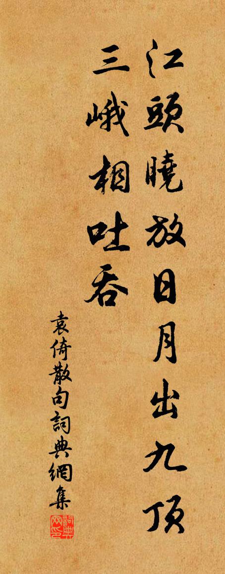 詩詞名句歷史字典書法欣賞書法字典國語詞典說文解字康熙字典古漢語字典標 題 作 者 詩 句 句作者:袁倚 朝代:宋代句原文江頭曉放日月出,九頂三峨相吐吞。詩詞問答問:句的作者是誰?答:袁倚問:句寫於哪個朝代?答:宋代袁倚句書法欣賞句書法作品詩詞推薦和盧贊府游紀國道場慧淨〔唐代〕日光通漢室,星彩晦周朝。法城從此構,香閣本岧嶢。株盤仰承露,剎鳳俯摩霄。落照侵虛牖,長虹拖跨橋。高才失調名趙佶〔宋代〕捲起珠簾。看是誰家妃子,收拾金奩。緋桃開小酌陸游〔宋代〕我廬城南村,家無十金產。種花雖歷歲,名品終有限。頗欲及暇時,著譜書之簡。今朝緋桃開,歡喜洗酒琖。鄰翁淳熙已酉二月二日皇帝登寶位鎡獲廁廷紳輒成張鎡〔宋代〕百僚重入賀新君,億載從今仰大昕。文德豈惟循舜道,武功行見訪堯勛。次韻和石學士見寄十首宋庠〔宋代〕親見仙科唱第時,寵均宣室對神釐。漢台詔令方深厚,好取名郎作訓辭。偈頌一百零二首釋紹曇〔宋代〕結夏已十日了也,寒山子作麽生。村詩吟落韻,竹管貯殘羹。結夏已十日了也,水牯牛作麽生。愛從荒草去,不向崔氏東山草堂杜甫〔唐代〕愛汝玉山草堂靜,高秋爽氣相鮮新。有時自發鐘磬響,落日更見漁樵人。盤剝白鴉谷口栗,飯煮青泥坊底芹。何為幽蘭詠王冕〔元代〕光風吹香洗游塵,蘭花隱芳蕕笑人。翠露沉沉玉環冷,忘言坐視空山春。幾回清夢度荊楚,欲問三閭杳無所。空將雨後早行曹彥約〔宋代〕嘉鉦攢點擔先行,未報平安睡已驚。燈火避明天弄曉,鳥烏無樂雨慳晴。喚來野渡水新漲,飽得晨炊煙自橫。驛使題乾洞連文鳳〔宋代〕何人鑿破雲煙壑,百丈雲煙生節角。解衣盤礴坐山風,一片松花半空落。燈夕劉克莊〔宋代〕千炬金梔映玉蕖,台城昨夢又年餘。斷無弦索鳴華屋,惟見炊煙起草廬。兒報瓶空因止酒,婢言油盡暫停書。蓬窗宿臨平寺李洪〔宋代〕客里疲奔走,禪關暫艤舟。顛毛成種種,身世信悠悠。天路辭鴻鵠,江湖狎鳥鷗。依然庭下柏,立雪伴冥搜。菊樓范成大〔宋代〕東籬秋色照疏蕪,挽結高花不用扶。淨洗西風塵土面,來看金碧萬浮圖。使兩浙贈羅隱羅袞〔唐代〕平日時風好涕流,讒書雖盛一名休。寰區嘆屈瞻天問,夷貊聞詩過海求。向夕便思青瑣拜,近年尋伴赤松游。何當玉堂春劉處玄〔元代〕仙觀靈虛,二年來來去。破了重修,星冠養素。應有真無,齋科救萬苦。達理忘言清靜居。道釋儒寬,通為三教,題釣台對嚴氏樓三首滕岑〔宋代〕秋江不許一塵染,只有青山倒影寒。我欲移家來住此,煩君先為斬魚竿。方響歌李沇〔唐代〕敲金扣石聲相凌,遙空冷靜天正澄。寶瓶下井轆轤急,小娃弄索傷清冰。穿絲透管音未歇,迴風繞指驚泉咽。季倫次韻再作歐陽修〔宋代〕吾年向世味薄,所好未衰惟飲茶。建溪苦遠雖不到,自少嘗見閩人夸。每嗤江浙凡茗草,叢生狼藉惟藏蛇。豈如含草茫茫-懲厚葬也白居易〔唐代〕草茫茫,土蒼蒼。蒼蒼茫茫在何處,驪山腳下秦皇墓。墓中下涸二重泉,當時自以為深固。下流水銀象江海,上綴別韋五高適〔唐代〕徒然酌杯酒,不覺散人愁。相識仍遠別,欲歸翻旅遊。夏雲滿郊甸,明月照河洲。莫恨征途遠,東看漳水流。名句推薦千家閉戶無砧杵,七夕何人望鬥牛。李嘉祐《早秋京口旅泊章侍御寄書相問因以贈之時七夕》 風勁角弓鳴,將軍獵渭城。王維《觀獵》 古路無行客,寒山獨見君。劉長卿《碧澗別墅喜皇甫侍御相訪》 重重蕊葉相憐,似青帔艷妝神仙侶。曹勛《夾竹桃花·詠題》 路人借問遙招手,怕得魚驚不應人。胡令能《小兒垂釣》 沉憂能傷人,綠鬢成霜蓬。李白《怨歌行》 語來江色暮,獨自下寒煙。李白《尋雍尊師隱居》 來相召、香車寶馬,謝他酒朋詩侶。李清照《永遇樂·落日熔金》 猶有桃花流水上,無辭竹葉醉尊前。劉禹錫《憶江南·春去也》 朱門酒肉臭,路有凍死骨。杜甫《自京赴奉先縣詠懷五百字 / 自京赴奉先詠懷五百字》