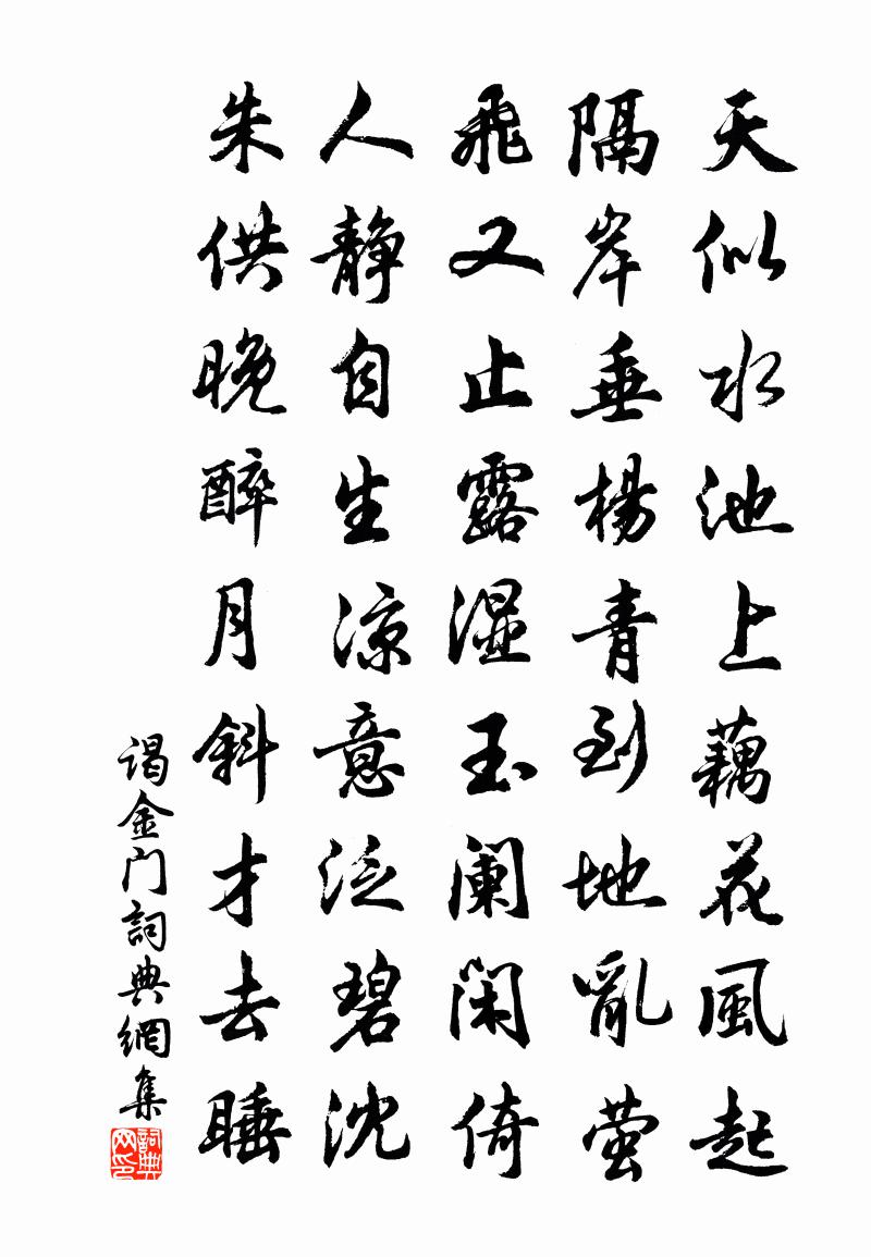 詩詞名句歷史字典書法欣賞書法字典國語詞典說文解字康熙字典古漢語字典標 題 作 者 詩 句 謁金門作者:佚名 朝代:宋代謁金門原文天似水。池上藕花風起。隔岸垂楊青到地。亂螢飛又止。露濕玉闌閒倚。人靜自生涼意。泛碧沈朱供晚醉。月斜才去睡。詩詞問答問:謁金門的作者是誰?答:佚名問:謁金門寫於哪個朝代?答:宋代問:佚名的名句有哪些?答:佚名名句大全佚名謁金門書法欣賞謁金門書法作品詩詞推薦題修仁縣群峰驛王奇〔宋代〕檻前流水面前山,幽鳥孤雲自往還。農父不知佳景好,使車才得片時閒。桄榔樹暗寒溪上,躑躅花紅暮雨間。山下偶作薛能〔唐代〕零雨沾山百草香,樹梢高頂盡斜陽。橫流巨石皆堪住,何事無僧有石房。四月望再游西湖十首陳造〔宋代〕疇昔相期補被來,飯餘歸意類擠排。苹風蘿月孤清夜,僅見山間結夏齋。題倪上人詩卷劉克莊〔宋代〕故交歲晚各西東,解後斯人慰老窮。莫把冠巾浼澄觀,更添鬚髮惱林公。強牽謝客為禪客,閒伴涪翁作釣翁。行矣和淮漕八月十四夜月詩二首劉宰〔宋代〕長淮百穀慶西成,萬里何妨共此晴。霖雨尚關天下望,月華猶幸晚來明。要看玉宇清光滿,聞道銀河北去平。邂逅陵山方信孺〔宋代〕龜趺無處問行蹤,惆悵連江荔子紅。鐵鑄崔嵬真大錯,驪山銅柱久成空。蝶釋行海〔宋代〕三三兩兩舞春暄,玉翅香須更可憐。拂草巡花情未定,又隨風絮過鞦韆。禪人並化主寫真求贊釋正覺〔宋代〕鬚髮老而覆霜,心念淨而發光。妙照混三世,幽靈空十方。口吞諸佛而不為大,舌拄梵天而不覺長。剎塵無間說,即事曹勛〔宋代〕殘冬梅玉已全開,明日新陽應候來。但喜痴兒欣節物,又聞殘酒滴爐灰。緣識宋太宗〔宋代〕歸信妙法要精專,極目煙霄路不偏。日月明通三界眼,雲梯上有十洲仙。慈悲願力彌何遠,煩惱能除道最堅。救苦臨江仙張伯壽〔宋代〕吳越家聲傳鐵券,當年功指山河。公侯袞袞後來多。休符鍾俊傑,氣宇稟沖和。磊落胸襟清廟器,鵬程背可天摩。句張洙〔宋代〕漫道玉為堂,玉堂今夜長。送路德章芾三首袁燮〔宋代〕賢哉子路子,德性兼剛柔。險難極變態,志苑凜高秋。訪我大江濱亟別挽莫留。問子將何之,長淮理扁舟。主人得詠竹宋庠〔宋代〕嵇阮生平憶共游,此君高節最凌秋。見童少作並門騎,千畝留封渭水侯。楊尉三和篇補其二以為答不敢虛盛意李石〔宋代〕湖亭飲酒對新鵝,金錯杯中卷白波。村鼓冬冬更堪憶,畫船照水采菱歌。余得石山二座西南道李監場索之附海船歸三山曾豐〔宋代〕浙峰既有飛來者,菱石能無取去人。來去儻然均一理,歐公何苦把眉顰。出七里瀧口望桐廬縣張伯玉〔宋代〕瀧口波自平,滄洲分兩溪。辛勤下百粵,乍出天一涯。近入桐廬市,潮水濫中泜。不聞湍瀨聲,沙鳥浩然飛。物我禪人並化主寫真求贊釋正覺〔宋代〕枯木形骸,野雲蹤跡。照兮夜色月摩,默也潭空秋入。三千界,露半身。九萬里,成一息。隨類應緣,何翅百億。卜運算元 前後各帶喝馬一聲 此下原有缺字王哲〔元代〕算詞中話。上甘津灑。養靈煙火養蓮,意馬。院俱齊舍。內丹無價。在山邊掛。有屯蒙玉線縫,野馬。月同安下。句陳襄〔宋代〕世有斯文屬孔顏。名句推薦贈遠虛盈手,傷離適斷腸。李商隱《十一月中旬至扶風界見梅花》 一年好景君須記,最是橙黃橘綠時。蘇軾《贈劉景文 / 冬景》 聰以知遠,明以察微。司馬遷《史記·五帝本紀》 過盡征鴻來盡燕,故園訊息茫然。趙長卿《臨江仙·暮春》 萬物靜觀皆自得,四時佳興與人同。程顥《秋日》 綠萼添妝融寶炬,縞仙扶醉跨殘虹曹雪芹《詠紅梅花得“紅”字》 孤燈寒照雨,濕竹暗浮煙。司空曙《雲陽館與韓紳宿別》 愁看飛雪聞雞唱,獨向長空背雁行。羅鄴《早發》 寂歷秋江漁火稀,起看殘月映林微。湯顯祖《江宿》 樓頭小婦鳴箏坐,遙見飛塵入建章。王昌齡《青樓曲二首》