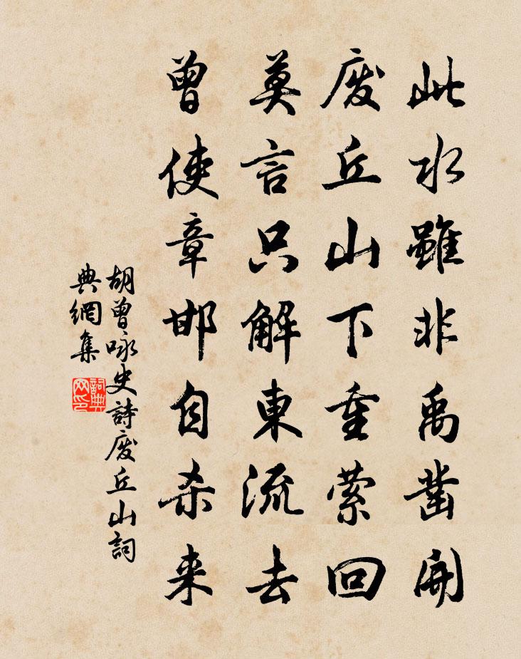 詩詞名句歷史字典書法欣賞書法字典國語詞典說文解字康熙字典古漢語字典標 題 作 者 詩 句 詠史詩廢丘山作者:胡曾 朝代:唐代詠史詩廢丘山原文此水雖非禹鑿開,廢丘山下重縈迴。莫言只解東流去,曾使章邯自1~1殺來。詩詞問答問:詠史詩廢丘山的作者是誰?答:胡曾問:詠史詩廢丘山寫於哪個朝代?答:唐代問:詠史詩廢丘山是什麼體裁?答:七絕胡曾詠史詩廢丘山書法欣賞詠史詩廢丘山書法作品注釋全唐詩:卷647-138詩詞推薦和仁仲歸鄉有感胡寅〔宋代〕大堤蜿蜒挾江長,卉木同泛春風香。青青嘉蔬不用買,採擷烹瀹皆堪嘗。羜肥豕腯白黑正,酒美魚賤吞江鄉。豈惟虞美人(和趙承之送權朝美接伴)王安中〔宋代〕文昌郎自文無比。風露行千里。試尋天上使星看。卻見錦衣白晝、過鄉關。邊城落照孤鴻外。聯璧人相對。應吟紅七夕曲王建〔唐代〕河邊獨自看星宿,夜織天絲難接續。拋梭振鑷動明璫,為有秋期眠不足。遙愁今夜河水隔,龍駕車轅鵲填石。流蘇餞雲壑唐使君赴邕州樂雷發〔宋代〕{上竹下思}簩竹畔擁雙旌,回首江蘺隔楚汀。曾向前賢參學問,且教遠俗識儀型。安南兵息塞烽冷,羅殿馬來蠻擬古其九李白〔唐代〕生者為過客,死者為歸人。天地一逆旅,同悲萬古塵。月兔空搗藥,扶桑已成薪。白骨寂無言,青松豈知春。前後寄台州使君五首舒坦〔宋代〕聞說天台太守家,全家日日在煙霞。壺中夜釀雲分潤,洞裹秋香玉弄花。四郭青山連市合,一江寒水抱城斜。紫芝讀魏鶴山先生渠陽集五首方回〔宋代〕濂翁傳到紫陽朱,復見嘉端此大儒。一論道原一原道,他求倫擬漢唐無。木蘊之國博遷居樓鑰〔宋代〕寄齋今日又遷居,門巷相過五尺余。王子何妨借人屋,淵明不必造吾廬。大千眼裡無非奇,三十乘中皆是書。祀灶洞仙歌(中呂調)柳永〔宋代〕佳景留心慣。況少年彼此,風情非淺。有笙歌巷陌,綺羅庭院。傾城巧笑如花面。恣雅態、明眸回美盼。同心綰。報師恩 景金本注云,五首本名瑞鷓鴣 削髮丘處機〔元代〕不僧不道不溫柔。九伯人前不害羞。覺性一時超法界。知身億劫是吾囚。改頭換面人難悟,走骨行屍我不憂。得意楊子直秘書以一詩送小兒歸省又一絕及平園花周必大〔宋代〕栽花種竹滿平園,人道安閒似樂天。自笑鉛黃消永日,何如蠻素樂華年。再和二首吳芾〔宋代〕一枝昨夜雪中開,報導江南春信回。自與東君私有約,不須驛使寄將來。風姿端是飛瓊侶,標格宜為弄玉媒。莫惜陽羨雜詠十九首。伏龜堂陸希聲〔唐代〕盤崖蹙縮似靈龜,鬼谷先生隱遁時。不獨卷懷經世志,白雲流水是心期。送桂州安撫余靖侍郎還京李師中〔宋代〕拜命南來得老臣,肅將廟略制妖氛。淮西將吏尊儒帥,並土兒童認使君。新賜錦衣光照日,舊行棠樹茂如雲。應憐觸觀物邵雍〔宋代〕萬物備吾身,身貧道未貧。觀時見物理,主敬得天真。心淨星辰夜,情析草木春。自憐斵喪者,能作太平人。病中賈大夫相訪因游中宮僧舍二首蘇轍〔宋代〕江城寒氣入肌膚,得告歸來強自扶。五馬獨能尋杜老,一床深愧致文殊。體虛正覺身如幻,談劇能令病自無。明日奉和獨賞牡丹李至〔宋代〕繞台依榭一叢叢,紫映黃苞白映紅。爛漫只因前夜雨,馨香無奈此時風。暖融春色交相妒,繁{左日右煞}晴陽艷聞蛙趙蕃〔宋代〕驚蟄已數日,聞蛙初此時。能如喜風月,不必問官私。偈頌三十首釋印肅〔宋代〕今日不知來日事,貪嗔痴愛度朝昏。披毛戴角更相互,豈識修真般若門。昌明里中讖佚名〔唐代〕欲知修續者,腳下是生毛。名句推薦千里萬里,二月三月,行色苦愁人。歐陽修《少年游·欄乾十二獨憑春》 算陰晴,渾似幾番,渭城故人離會。吳文英《永遇樂·乙巳中秋風雨》 小雨空簾,無人深巷,已早杏花先賣。史達祖《夜行船·正月十八日聞賣杏花有感》 念蘭堂紅燭,心長焰短,向人垂淚。晏殊《撼庭秋·別來音信千里》 麋鹿成群,虎豹避之;飛鳥成列,鷹鷲不擊劉向《說苑·雜言》 此情無計可消除,才下眉頭,卻上心頭。李清照《一剪梅·紅藕香殘玉簟秋》 胡人吹笛戍樓間,樓上蕭條海月閒。高適《和王七玉門關聽吹笛 / 塞上聞笛》 反古者未必可非,循禮者未足多是也。商鞅《商君書·更法》 客行野田間,比屋皆閉戶。姚合《莊居野行》 白日來深殿,青雲滿後塵杜甫《寄李十二白二十韻》