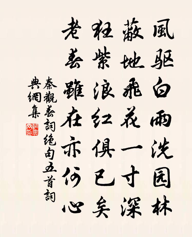 風驅白雨洗園林,蔽地飛花一寸深。狂紫浪紅俱已矣,老春雖在亦何心。