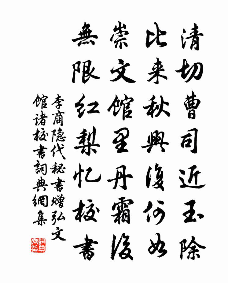 清切曹司近玉除,比來秋興復何如。崇文館裡丹霜後,無限紅梨憶校書。