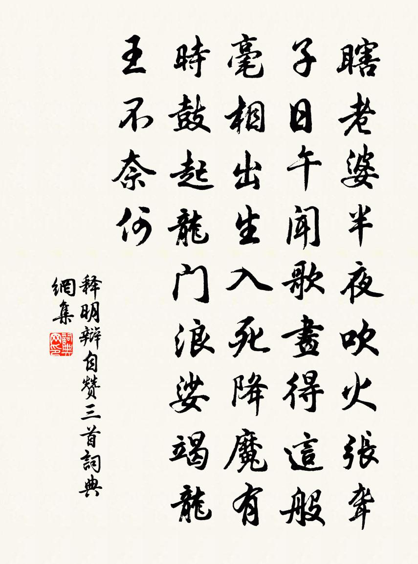 詩詞名句歷史字典書法欣賞書法字典國語詞典說文解字康熙字典古漢語字典標 題 作 者 詩 句 自贊三首作者:釋明辯 朝代:宋代自贊三首原文瞎老婆半夜吹火,張聾子日午聞歌。畫得這般毫相,出生入死降魔。有時鼓起龍門浪,娑竭龍王不奈何。詩詞問答問:自贊三首的作者是誰?答:釋明辯問:自贊三首寫於哪個朝代?答:宋代釋明辯自贊三首書法欣賞自贊三首書法作品詩詞推薦餘姚飯陳造〔宋代〕昨暮浴上虞,今晨飯餘姚。官期有餘日,我行得逍遙。盤實剝芡芰,羹魚薦蘭椒。一鮑老人事,茗飲亦復聊。捫腹蕃與斯遠季奕同生於十二月蕃初五日季奕初十趙蕃〔宋代〕徐子崖根竹,風雪不掩綠。鄭子谷中蘭,冰霜已騰馥。二子有此風,宜爾生窮冬。我獨何為者,飄然直轉蓬。寄題從兄坤載村居李鹹用〔唐代〕鄰並無非樵釣者,莊生物論宛然齊。雨中寒樹愁鴟立,江上殘陽瘦馬嘶。說與眾傭同版築,呂將群叟共磻溪。覆巢烏夜啼盧祖皋〔宋代〕段段寒沙淺水,蕭蕭暮雨孤篷。香羅不共征衫遠,砧杵客愁中。別恨慵看楊柳,歸期暗數芙蓉。碧梧聲到紗窗曉,長信宮佚名〔宋代〕細草侵階亂碧鮮,宮門深鎖綠楊天。珠簾欲卷抬秋水,羅幌微開動冷煙。風引漏聲過枕上,月移花影到窗前。獨挑甲寅元月二首劉克莊〔宋代〕七袠駸駸病鮮懽,君恩猶許備祠官。婢傳稚子屠蘇酒,奴笑先生苜蓿槃。自嘆管君今老禿,更悲龐叟不團欒。新年詠金橘蘇簡〔宋代〕小小根栽出近□,□□繁實傲秋天。恍如列宿掛庭樹,幾誤飢兒逐彈圓。荔子甘香欲爭席,赤心粗俗敢差肩。飲仙偶作楊簡〔宋代〕詩痴正自不煩攻,只為英才輒墮中。今日已成風俗後,後生個個入樊籠。戲作司花謠呈詹進卿大監郎中楊萬里〔宋代〕靈君觴客滕王家,鰲頭仙人作司花。仙人一笑春風起,開盡仙源萬桃李。李花冶白桃倡紅,坐客桃霞李雪中。仙人李密學遺苔醬脯雲是自採為之梅堯臣〔宋代〕潩流寒且急,岸草已凋摧。石發尚堪把,江人曾不來。誰知烏榜去,留采碧潭限。持作吳鄉味,能令案淥杯。蝶戀花王安中〔宋代〕花公莫愛,四時俱好是長春。曲徑深叢枝裊裊。暈粉揉綿,破蕊烘清曉。十二番開寒最好。此花不惜春歸早。青女紹興祀岳鎮海瀆四十三首佚名〔宋代〕澒洞鴻濛,天興無極。尋納江漢,節宣南北。順助其功,善下惟德。我祀孔時,以介景福。贈張玉田仇遠〔宋代〕秦川公子謫仙人,布袍落魄餘一身。錦囊香歇玉簫斷,庾郎白髮徒傷春。金台掉頭不肯住,欲把釣竿東海去。故鄉賀郡守得江陰敖陶孫〔宋代〕檢點詩篇方細讀,忽傳新渥照澄江。榮公銅虎非渠事,舊憶河豚是此邦。蕭散蓋公宜置舍,風流謝守想臨窗。他時送鄭少卿景望知建寧陳傅良〔宋代〕海內言華萼,誰名動縉紳。豈無當世志,能忍十年貧。酒興新來減,交情老更親。公餘如促膝,剩把古書陳。題雲嚴寺戴栩〔宋代〕才見好山疑近寺,卻尋流水入山來。坡頭上下無平屋,松色中間有落梅。越地此方全是海,唐碑其字半生苔。萬庵晚步家鉉翁〔宋代〕閉門自要身心斂,出戶方知天地寬。晚步中庭人不識,道余痴想白雲端。眼兒媚 以上二首見中州樂府許古〔元代〕濁醪得玉為漿。風韻帶橙香。持杯笑道,鵝黃似酒,酒似鵝黃。世緣老矣不思量。沈醉又何妨。臨風對月,山歌同喻景山游月湖陳宓〔宋代〕兼旬不到月湖來,無數荷花雨里開。燕是舊知頻繞棟,蟬如有意共銜杯。公庭兀坐雖無暇,佳友同攜得幾回。冒雨次韻舜選大夫客舍中秋李彌遜〔宋代〕命駕星郎獨感時,興隨孤月到雲涯。當天飛鏡空撩恨,永夜明樓謾攪詩。後閣深藏桃葉女,前驅須趁菊花期。與君名句推薦雲來氣接巫峽長,月出寒通雪山白。杜甫《古柏行》 短景歸秋,吟思又接愁邊。史達祖《玉蝴蝶·晚雨未摧宮樹》 但恨處非位,愴悢使心傷。阮籍《詠懷八十二首·其七十九》 紗窗日落漸黃昏,金屋無人見淚痕。劉方平《春怨》 銀鞍照白馬,颯沓如流星。李白《俠客行》 新寒中酒敲窗雨,殘香細裊秋情緒。納蘭性德《菩薩蠻·新寒中酒敲窗雨》 淚眼不曾晴,眉黛愁還聚游次公《卜運算元·風雨送人來》 河水傾潑丈余,雞鳴犬吠滿城中。蒲松齡《地震》 梅子青,梅子黃,菜肥麥熟養蠶忙。祝允明《首夏山中行吟》 苔深不能掃,落葉秋風早。李白《長干行二首》