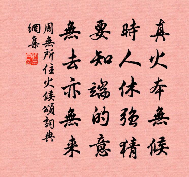 詩詞名句歷史字典書法欣賞書法字典國語詞典說文解字康熙字典古漢語字典標 題 作 者 詩 句 火候頌作者:周無所住 朝代:宋代火候頌原文真火本無候,時人休強猜。要知端的意,無去亦無來。詩詞問答問:火候頌的作者是誰?答:周無所住問:火候頌寫於哪個朝代?答:宋代周無所住火候頌書法欣賞火候頌書法作品詩詞推薦毋忽詩周端臣〔宋代〕毋忽咫尺水,中恐有伏龍。毋忽尋丈山,中恐有毒蟲。是以古君子,不敢欺盲聾。審密言語間,戒謹闇室中。幾微遇道者貫休〔唐代〕鶴骨松筋風貌殊,不言名姓絕榮枯。尋常藜杖九衢里,莫是商山一皓無。身帶煙霞游汗漫,藥兼神鬼在葫蘆。只應和錢濟明游官園楊時〔宋代〕虛舟觸物本無意,看花得句慚非才。名園古寺尋春色,不葷勿鄙雙魚鰓。木奴千頭化封戶,秋實付與江風催。因思新上頭韓偓〔唐代〕學梳松鬢試新裙,訊息佳期在此春。為要好多心轉惑,遍將宜稱問傍人。贈廣陵妓張又新〔唐代〕雲雨分飛二十年,當時求夢不曾眠。今來頭白重相見,還上襄王玳瑁筵。賦得蜀都褚亮〔唐代〕列宿光參井,分芒跨梁岷。沉犀對江浦,駟馬入城闉。英圖多霸跡,歷選有名臣。連騎簪纓滿,含章詞賦新。得上念奴嬌 欽叔欽用避兵太華絕頂,以書見招,元好問〔金代〕雲間太華,笑蒼然塵世,真成何物。玉井蓮開花十丈,獨立蒼龍絕壁。九點齊州,一杯滄海,半落天山雪。中原逐閏正月十五日夜監直對月懷諸同舍司馬光〔宋代〕霧淨金波溢,天開碧幕空。夜寒雖料峭,春意自沖融。熠熠枝上露,攸攸竹杪風。暫還林野興,不似畜樊龍。題狄彥哲雲溪隱居二首項安世〔宋代〕閒居郭內似村中,背市臨河一逕通。案上漆書何世字,牆頭碧瓦古時宮。苦遭客子驚鷗鳥,閒在橋邊數釣筒。不是覽崔爽遺文,因紓幽懷孟郊〔唐代〕墮淚數首文,悲結千里墳。蒼旻且留我,白日空遺君。仙鶴未巢月,衰鳳先墜雲。清風獨起時,舊語如再聞。瑤草華亭百詠湖橋許尚〔宋代〕瀲灩湖光好,荷風六月涼。倚欄吟不倦,魚鳥亦相忘。詠凌霄花袁燮〔宋代〕松柏扳援有女蘿,紅英亦復蔓高柯。侵尋縱上雲霄去,究竟依憑未足多。失題趙崇嶓〔宋代〕雲台會功臣,際會若風虎。獨有嚴子陵,垂竿富春渚。相求對幽藐,相知有平素。吾寢惟吾真,君意應勿忤。歸來十四夜月趙蕃〔宋代〕鏡破何年合,珠沈幾日還。空明歙溪石,行列婺州山。雁泊宵仍警,蟲哀夜不閒。傳呼語舟子,移楫近前灣。雨中花令(夏詞)王觀〔宋代〕百尺清泉聲陸續。映瀟灑、碧梧翠竹。面千步迴廊,重重簾幕,小枕敧寒玉。試展鮫綃看畫軸。見一片、瀟湘凝綠晉銘文同〔宋代〕長安鬻碑者,遺我古鼎銘。不知其所來,有眼實未經。凡百十九字,詭怪摹物形。縱橫下點畫,不類子與丁。試考和竇侍御登涼州七級浮圖之作高適〔唐代〕化塔屹中起,孤高宜上躋。鐵冠雄賞眺,金界寵招攜。空色在軒戶,邊聲連鼓鼙。天寒萬里北,地豁九州西。清興蘇公堤董嗣杲〔宋代〕青紅一線界沙堤,日日香風逐馬蹄。三月桃花無浪起,六橋柳色有鶯啼。官亭飛蓋春相接,酒舍收旗晚自迷。遊子送琉書記還長樂釋崇岳〔宋代〕迢迢故國三千里,忽憶萓堂送別時。拄杖生風興何極,楚天遼邈遠山低。贈工部侍郎鄭公輓辭王安石〔宋代〕地蟠江漢久知靈,通德門中見老成。南去伏波推將略,北來光祿擅詩名。密章贈襚連三組,畫翣喪車載一旌。陰德名句推薦二月湖水清,家家春鳥鳴。孟浩然《春中喜王九相尋 / 晚春》 日光寒兮草短,月色苦兮霜白。李華《弔古戰場文》 故人不可見,新知萬里外。文天祥《端午即事》 何當載酒來,共醉重陽節。孟浩然《秋登蘭山寄張五》 見人不正,雖貴不敬也;見人有污,雖尊不下也。司馬遷《史記·日者列傳》 不明察,不能燭私。韓非及後人《韓非子·孤憤》 花自飄零水自流。一種相思,兩處閒愁。李清照《一剪梅·紅藕香殘玉簟秋》 桃李風前多嫵媚,楊柳更溫柔。辛棄疾《武陵春·桃李風前多嫵媚》 花滿河陽,為君羞褪晨妝茜。吳文英《燭影搖紅·賦德清縣圃古紅梅》 丹楓萬葉碧雲邊,黃花千點幽岩下。張掄《踏莎行·秋入雲山》